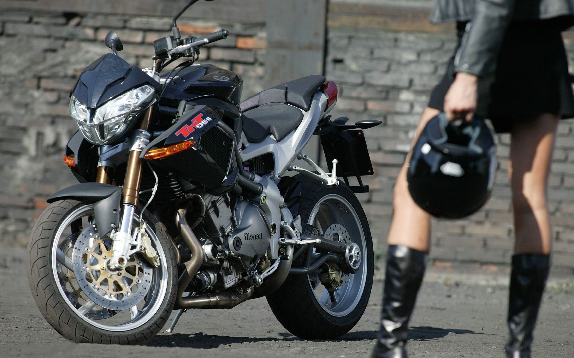Dziewczyna w kasku na czerwonym motocyklu