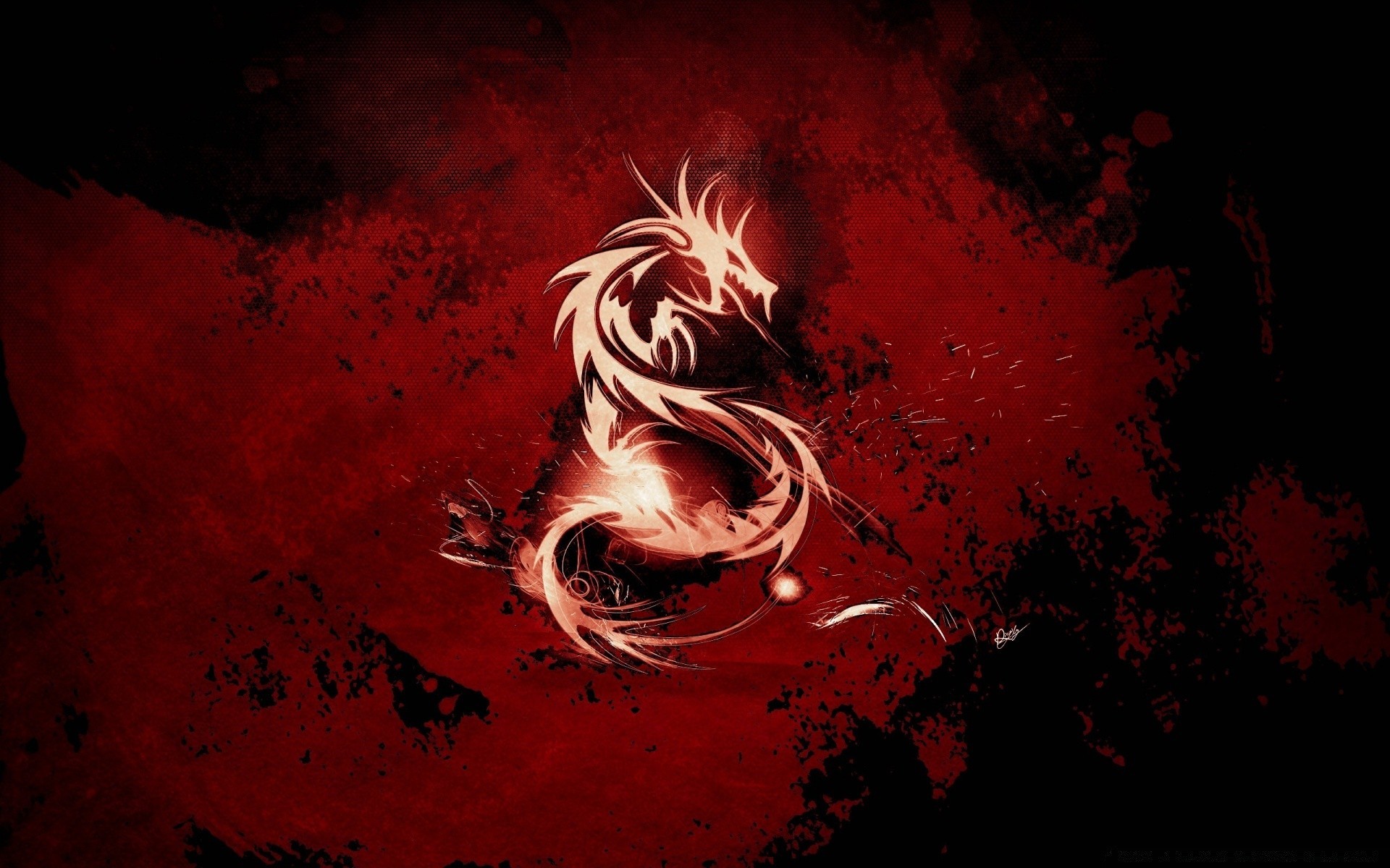 Ognisty smok na czerwonym tle
