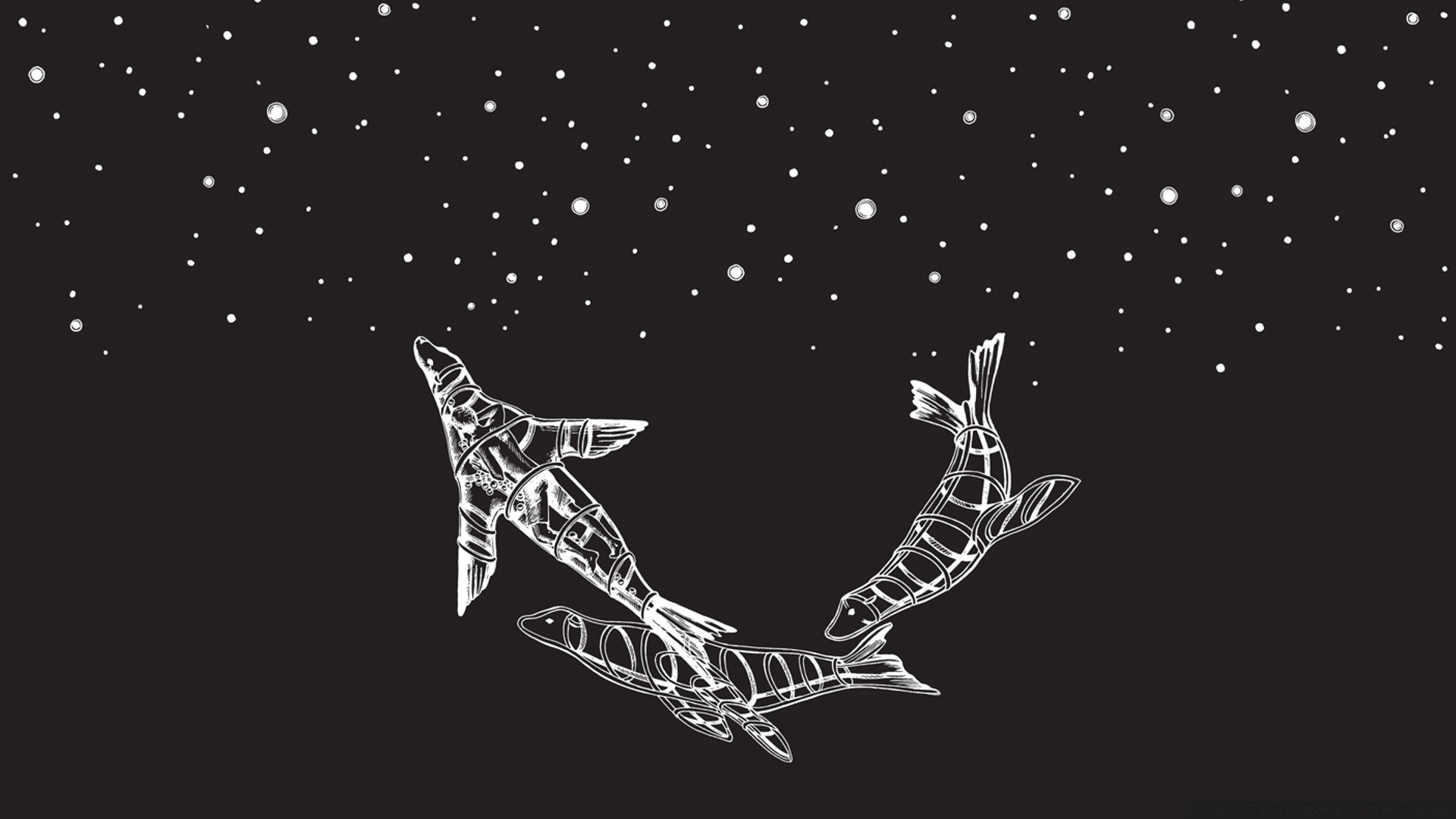 Czarne delfiny na gwiaździstym niebie