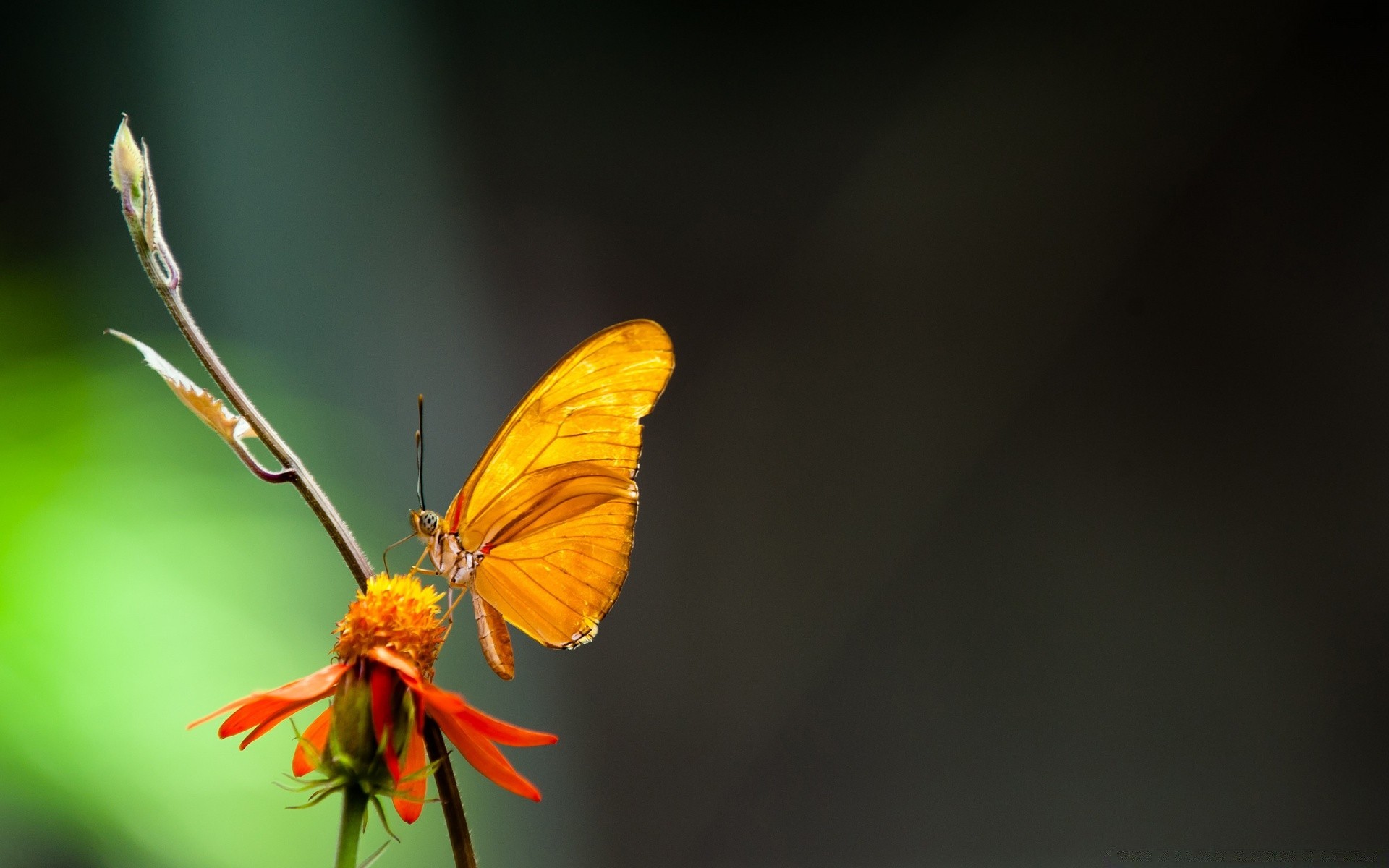 Motyl siedzi na pomarańczowym kwiatku