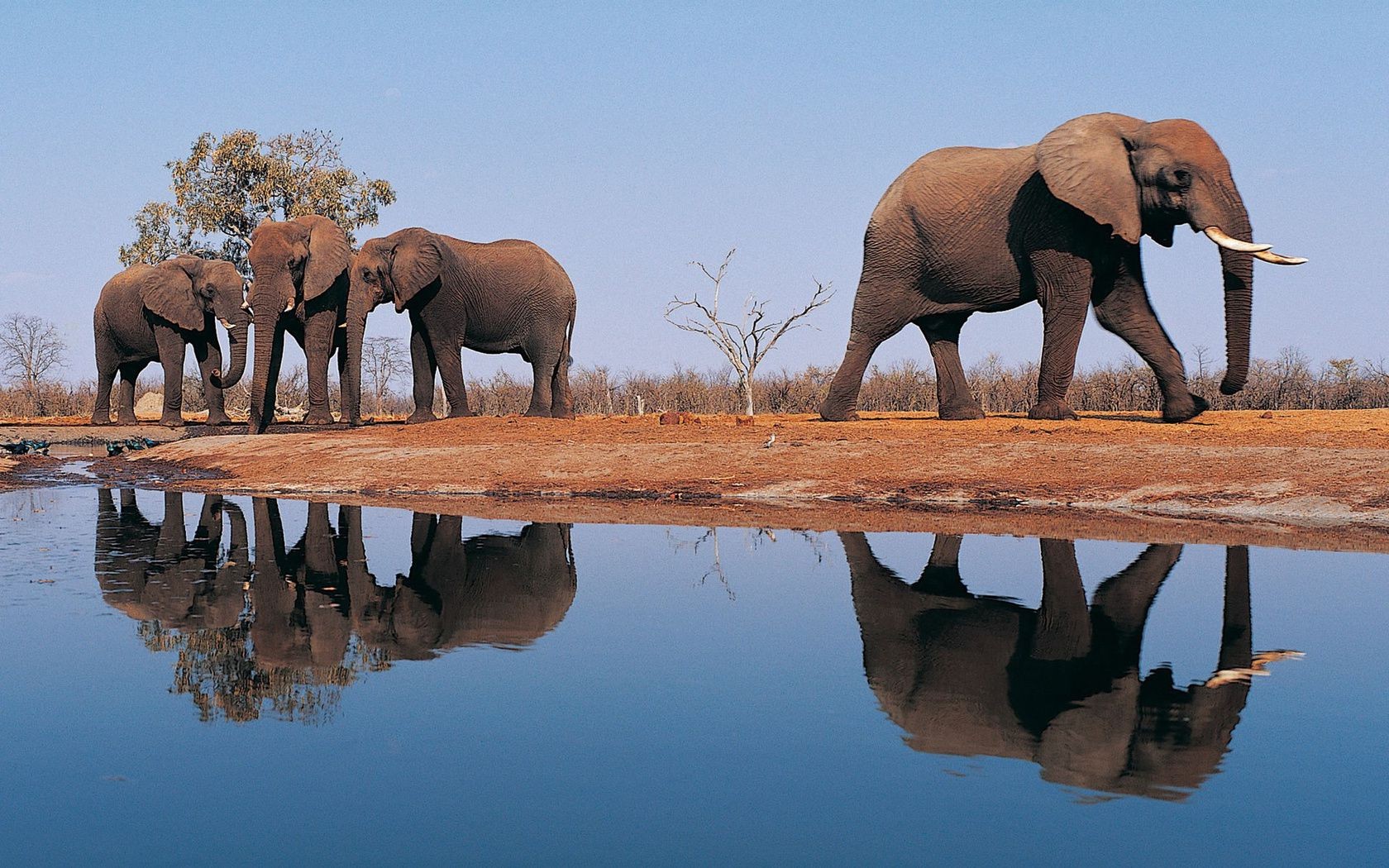Grupa słoni na wodopoju w Savannah