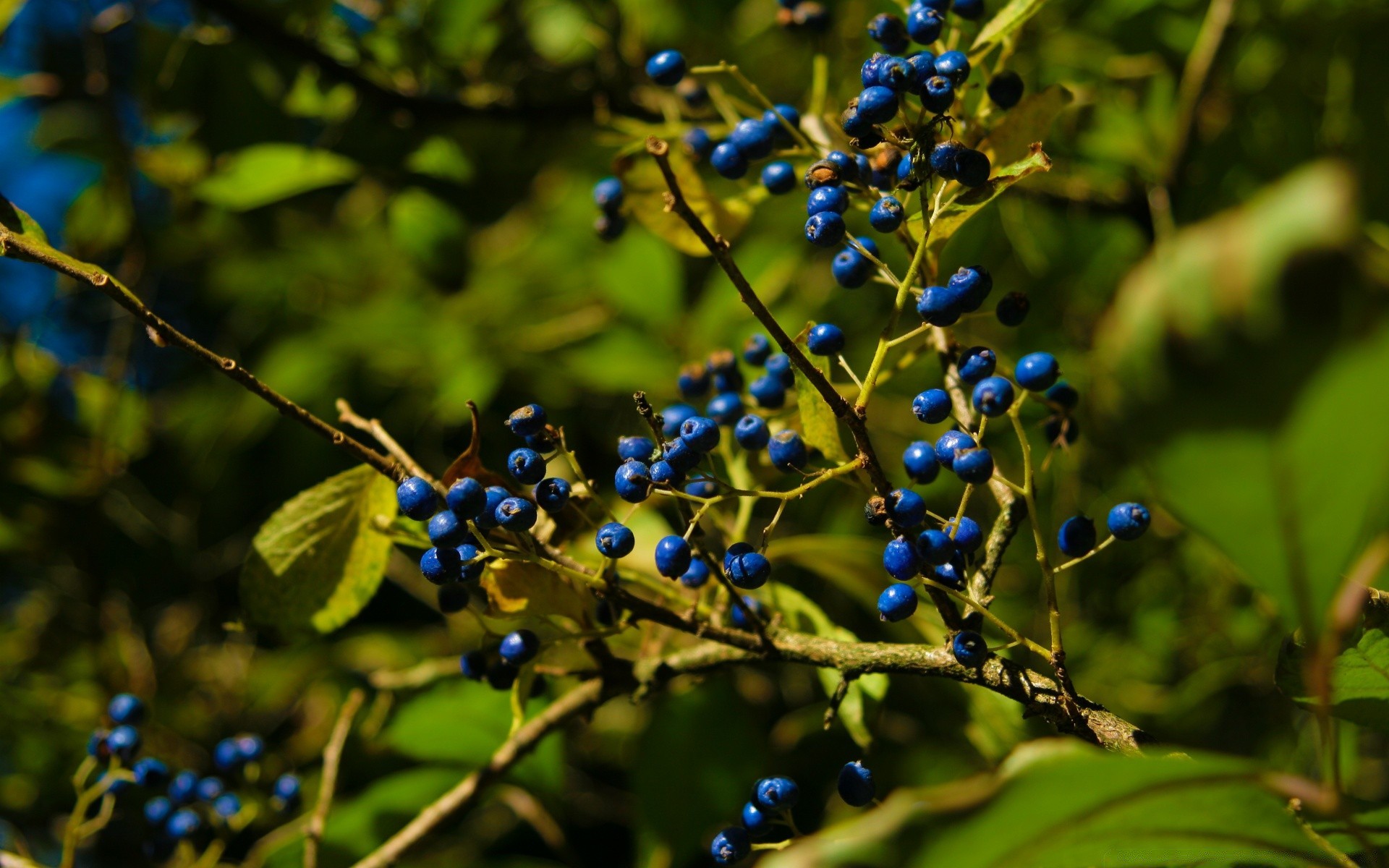 Niebieskie jagody wiszą na gałęzi