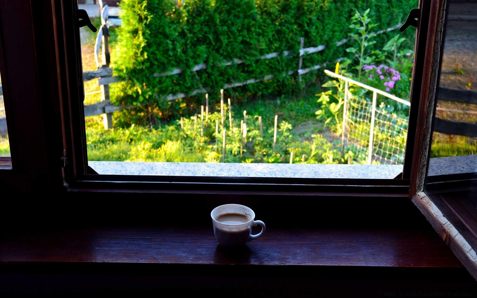 Filiżanka kawy znajduje się na parapecie