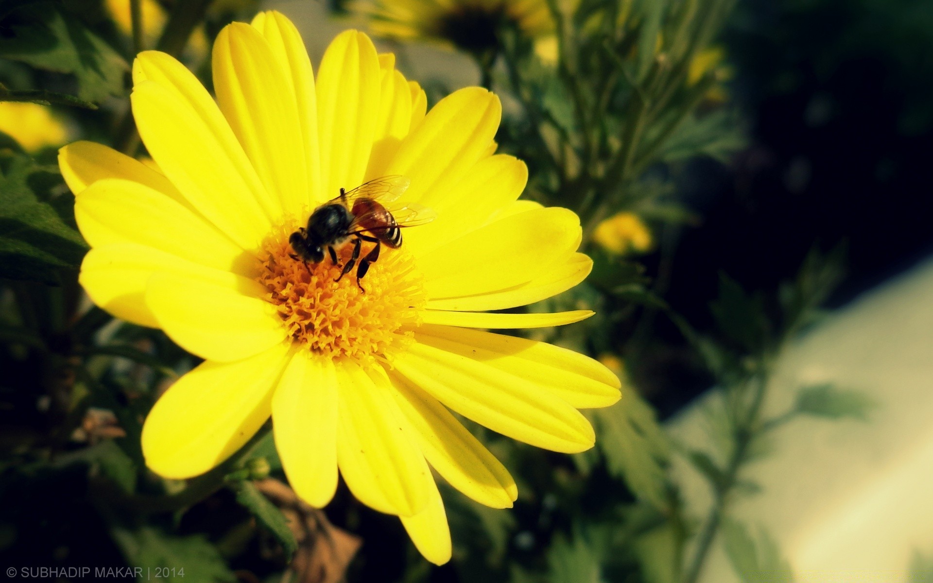 Natura. Proces zapylania żółtego kwiatu