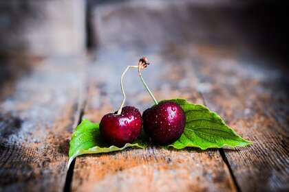Wisienka z kroplami martwej natury na stole