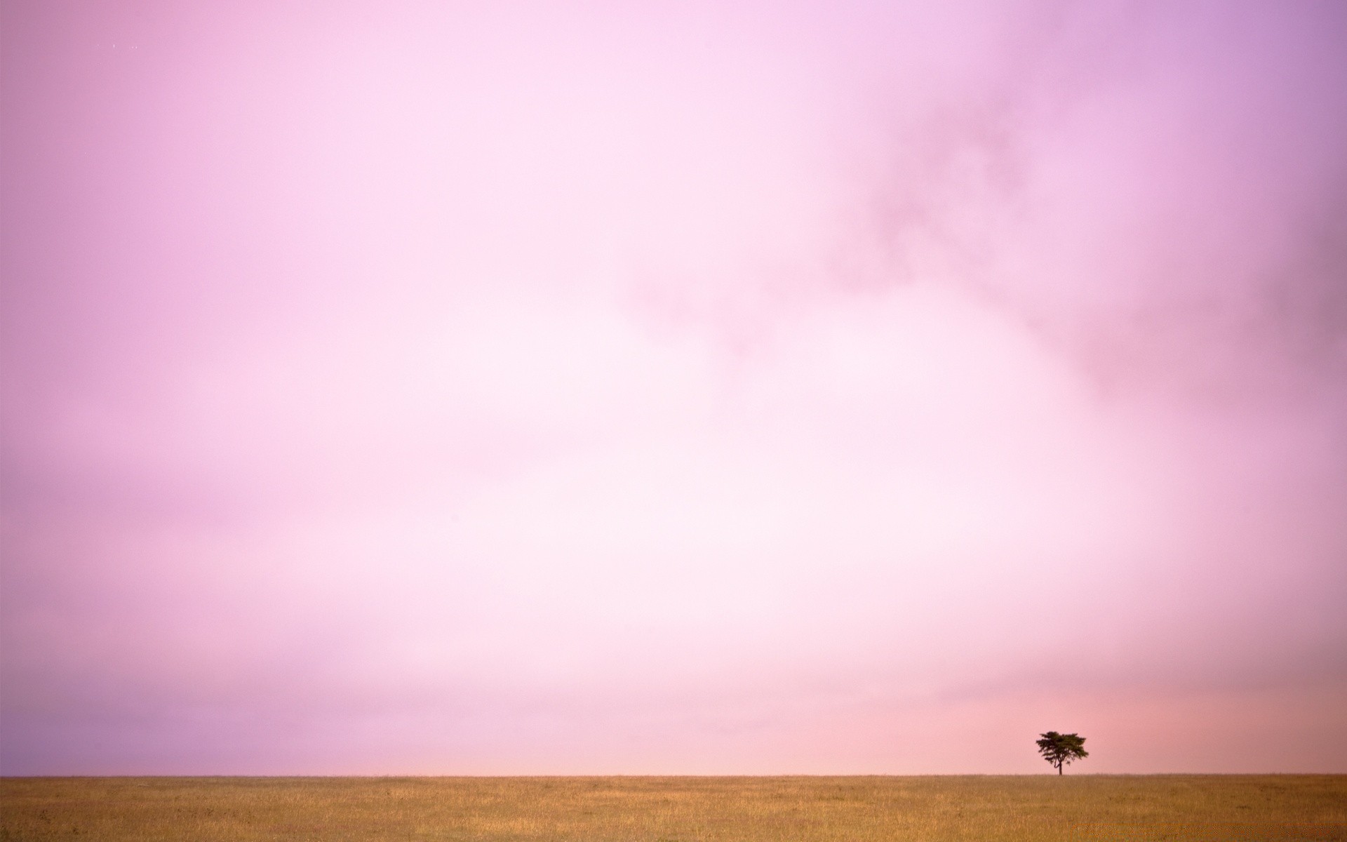 Samotne drzewo na tle różowego nieba przed zachodem słońca