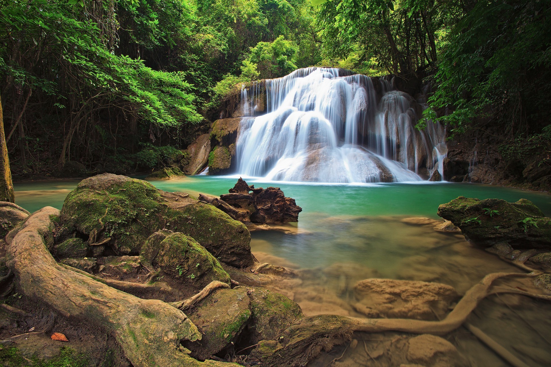 Tropikalny wodospad. Zielona dżungla. Rajski zakątek