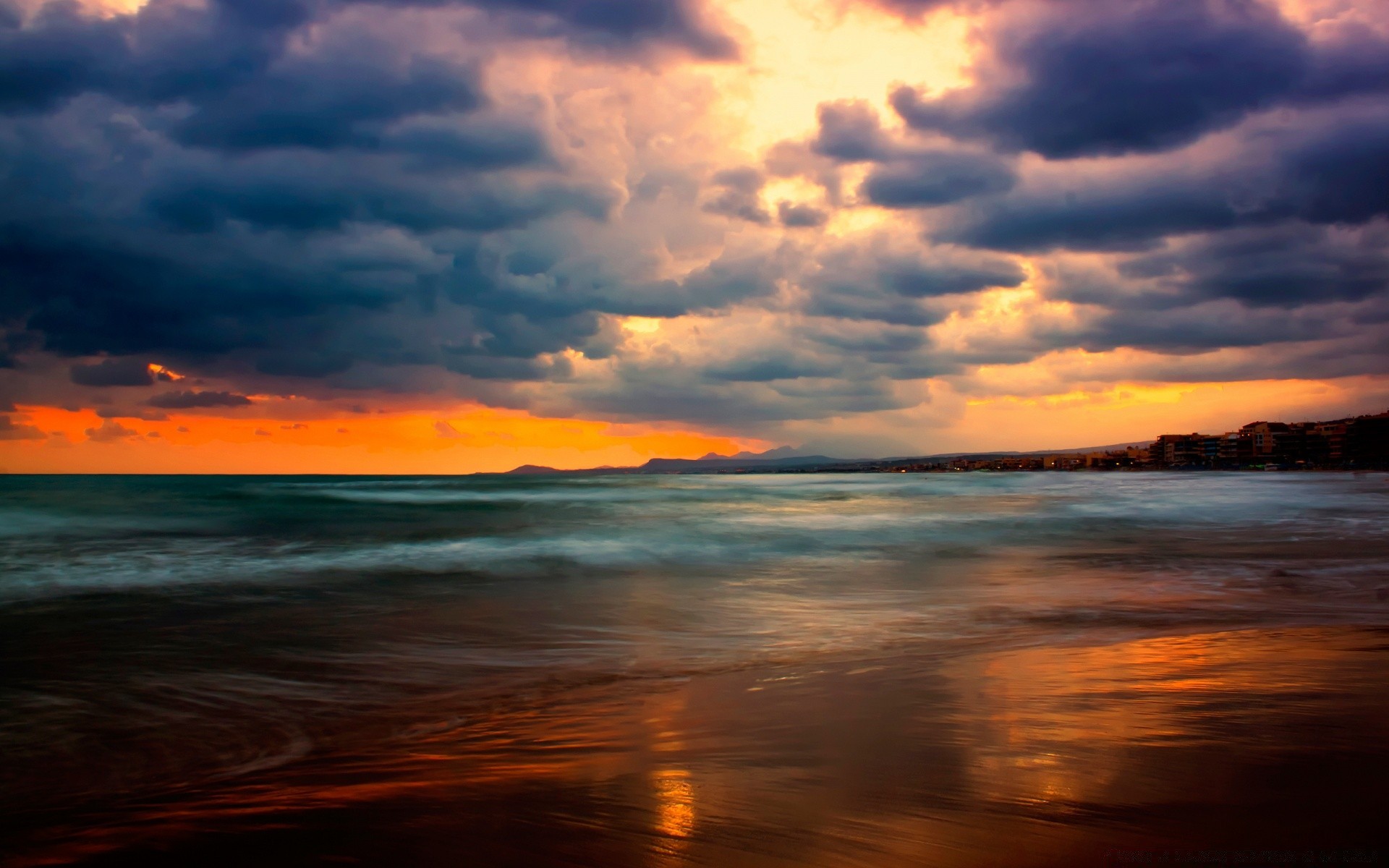 Karmazynowy Zachód słońca przez chmury nad oceanem