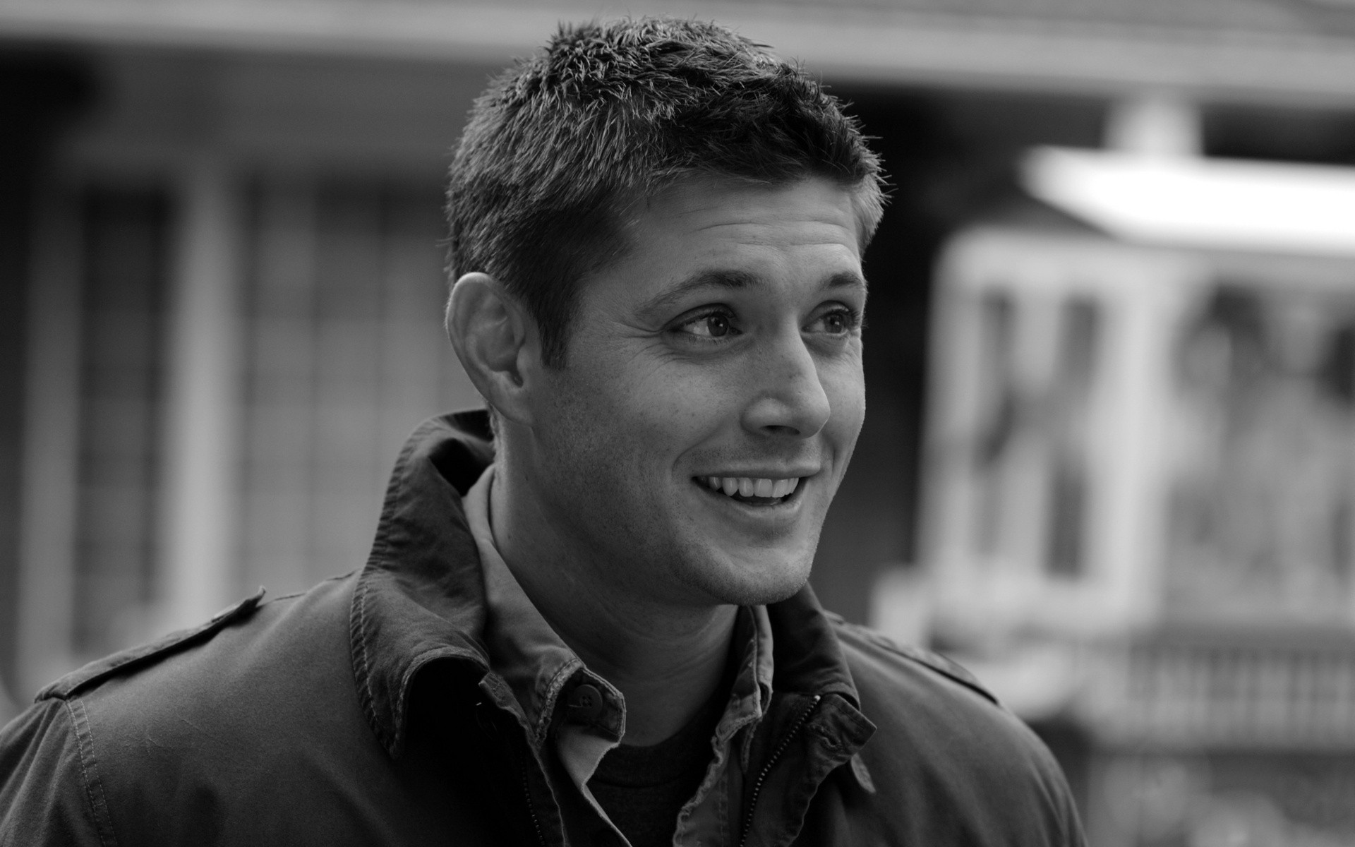 Czarno - białe zdjęcie uśmiechniętego aktora
