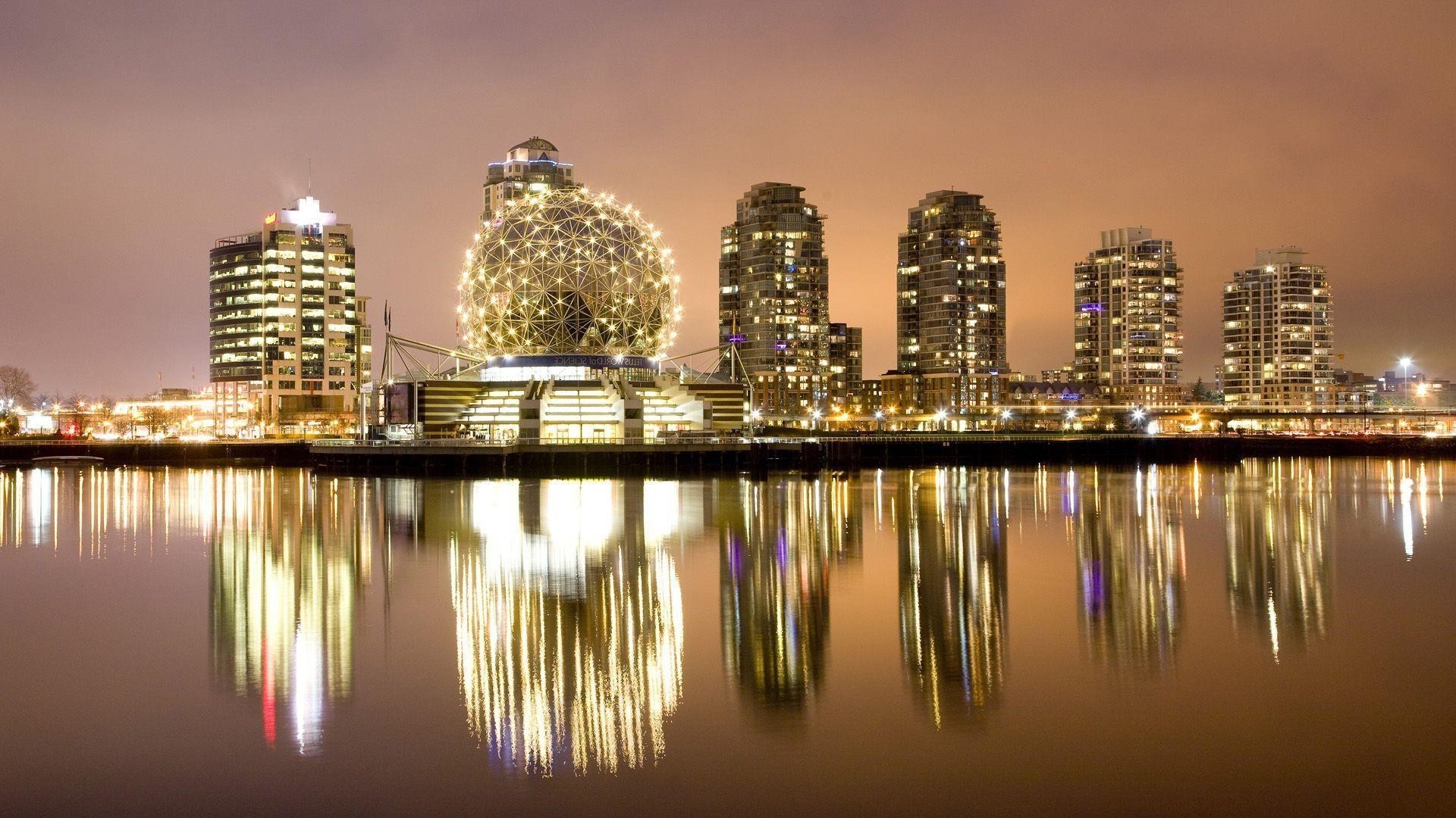 Duże miasto w pobliżu oceanu w światłach