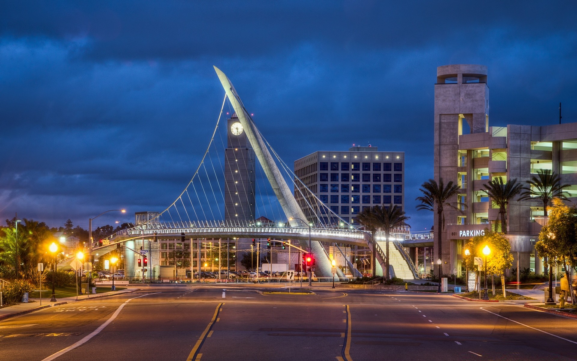 NOCNE MIASTO. Drapacz. Odbicie w wodzie