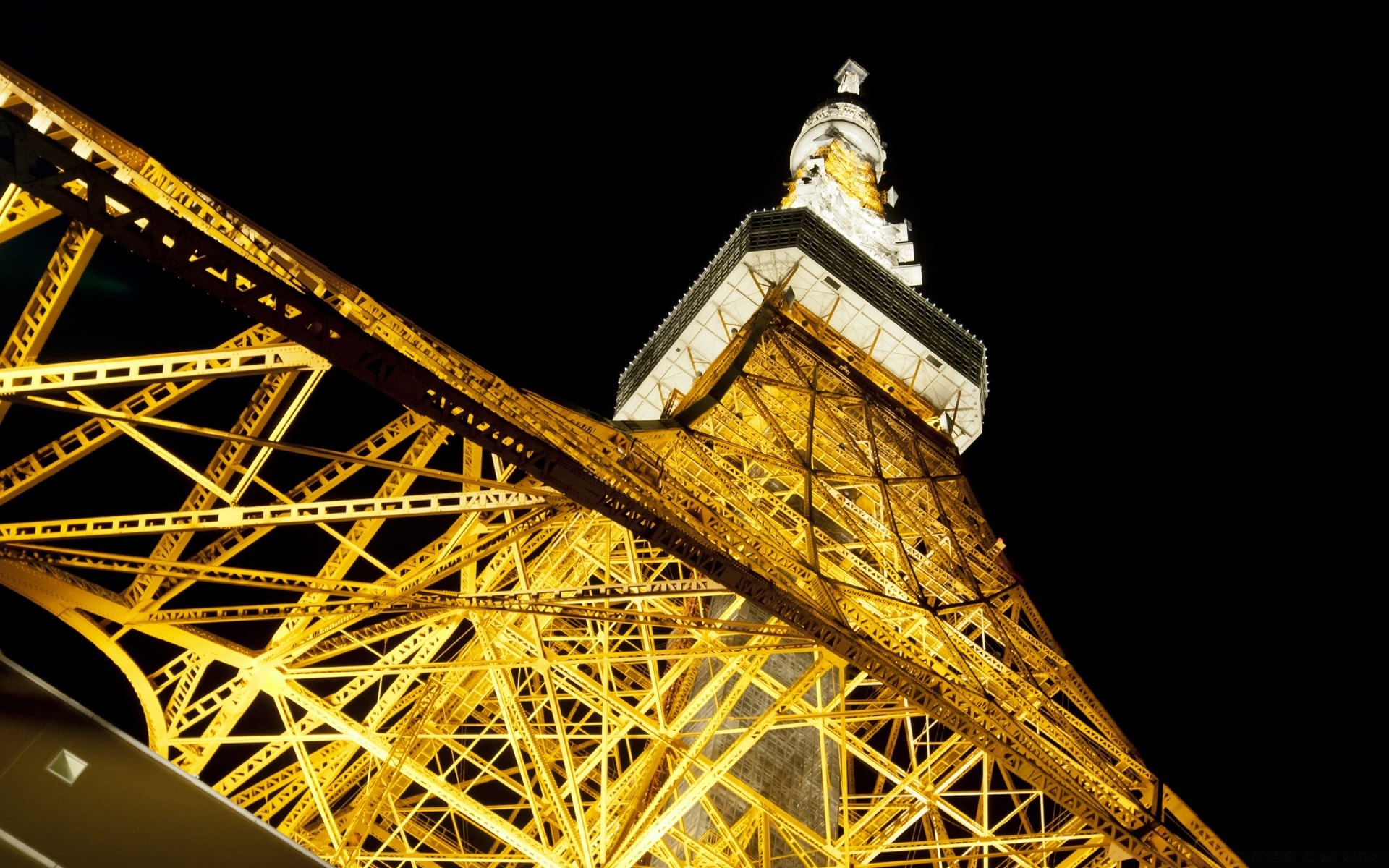 W centrum nocne niebo we mgle otoczone drapaczami chmur w światłach