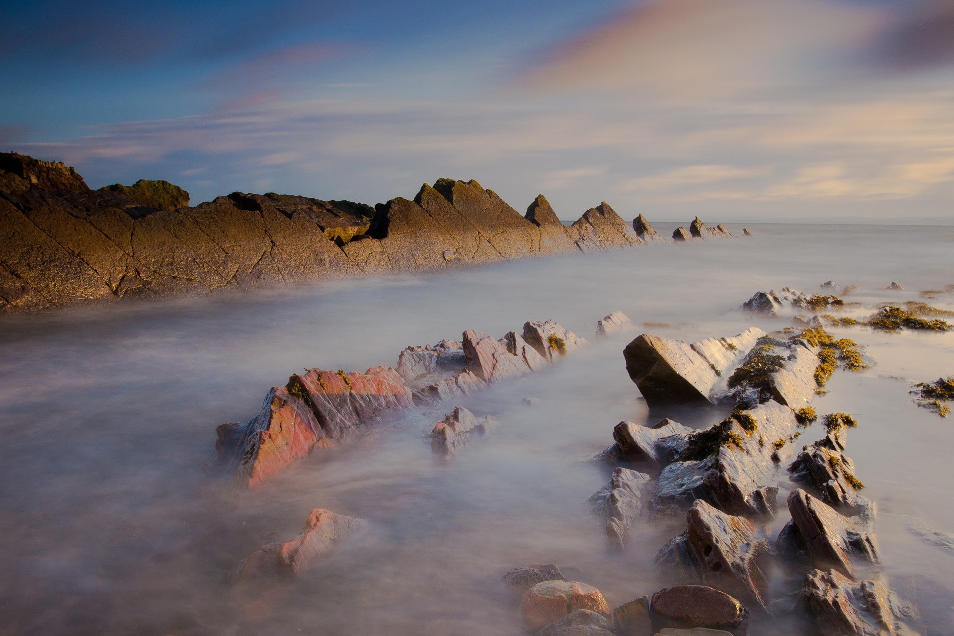 Skały, skały, drzewa, potok niesamowity krajobraz