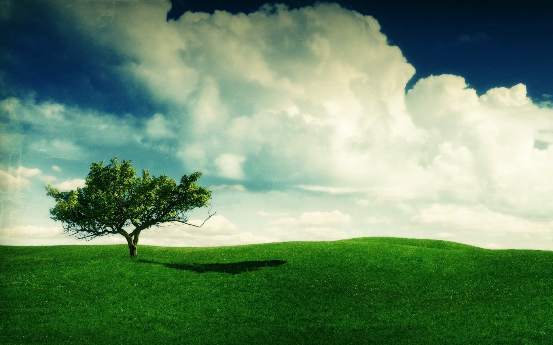 Krajobraz z zieloną trawą i drzewem