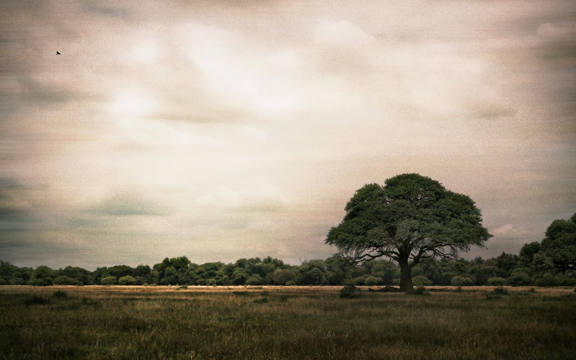 Krajobraz drzewo na tle nieba i zachodu słońca