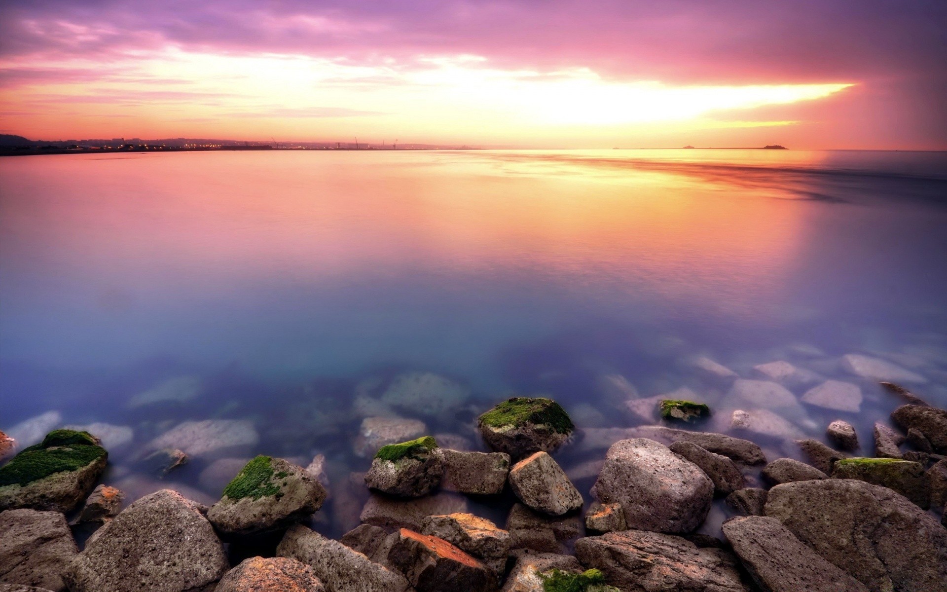 Odbicie morza w promieniach zachodu słońca