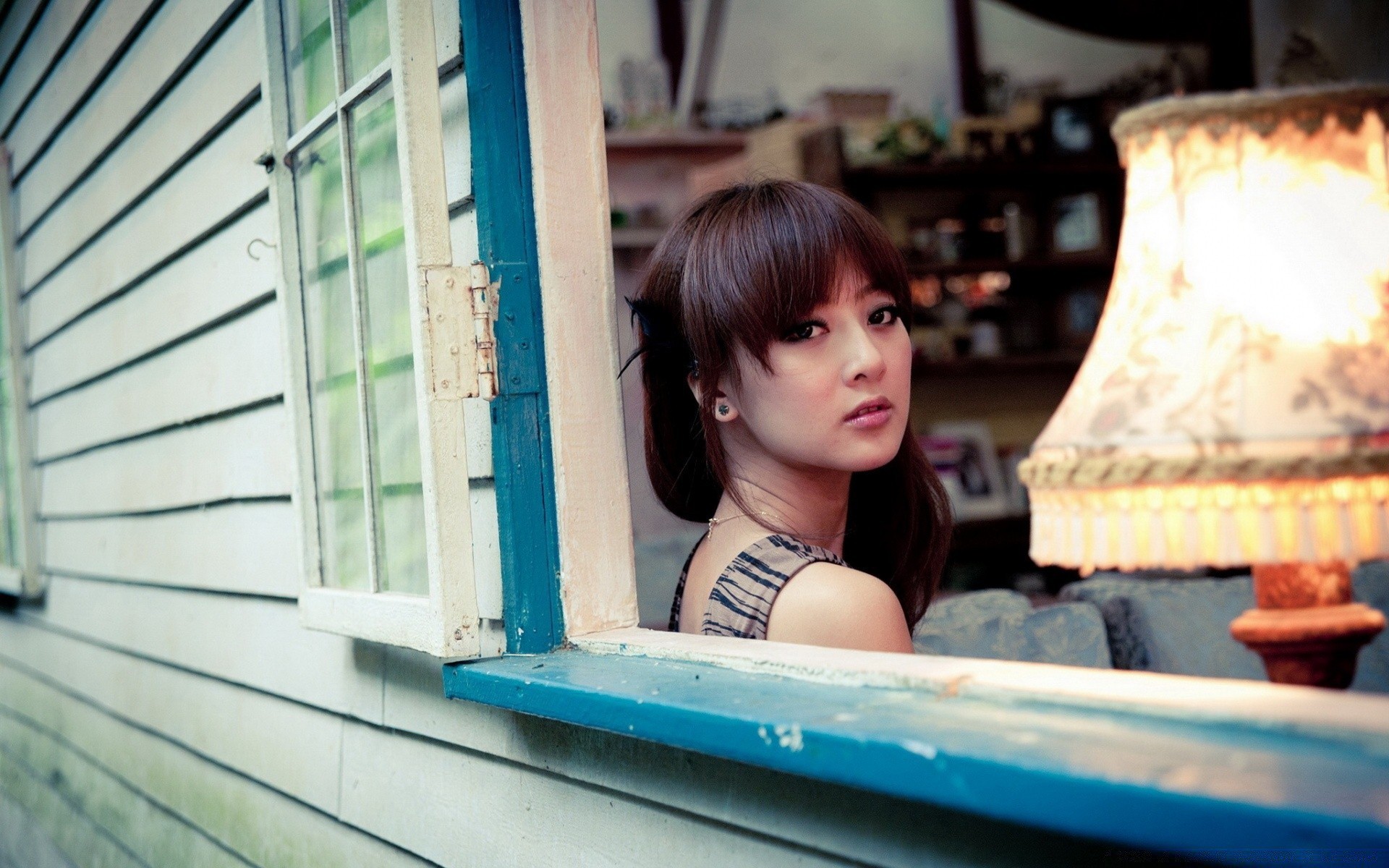 Młoda dziewczyna patrzy przez okno