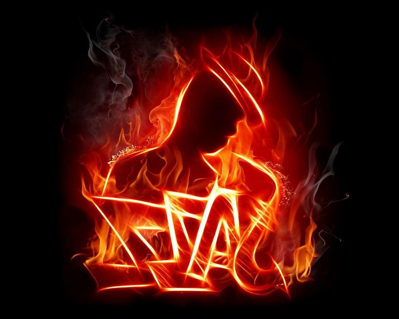 Dziewczyna w niebieskim płomieniu na czarnym tle