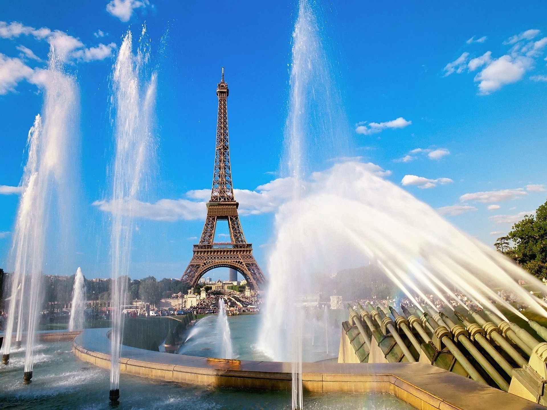 Budynek z piękną architekturą na tle błękitnego nieba z chmurami na brzegu akwenu
