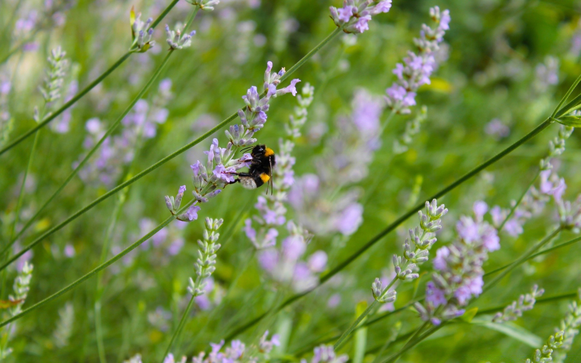 Na pięknych feoletowych kwiatach pszczoła