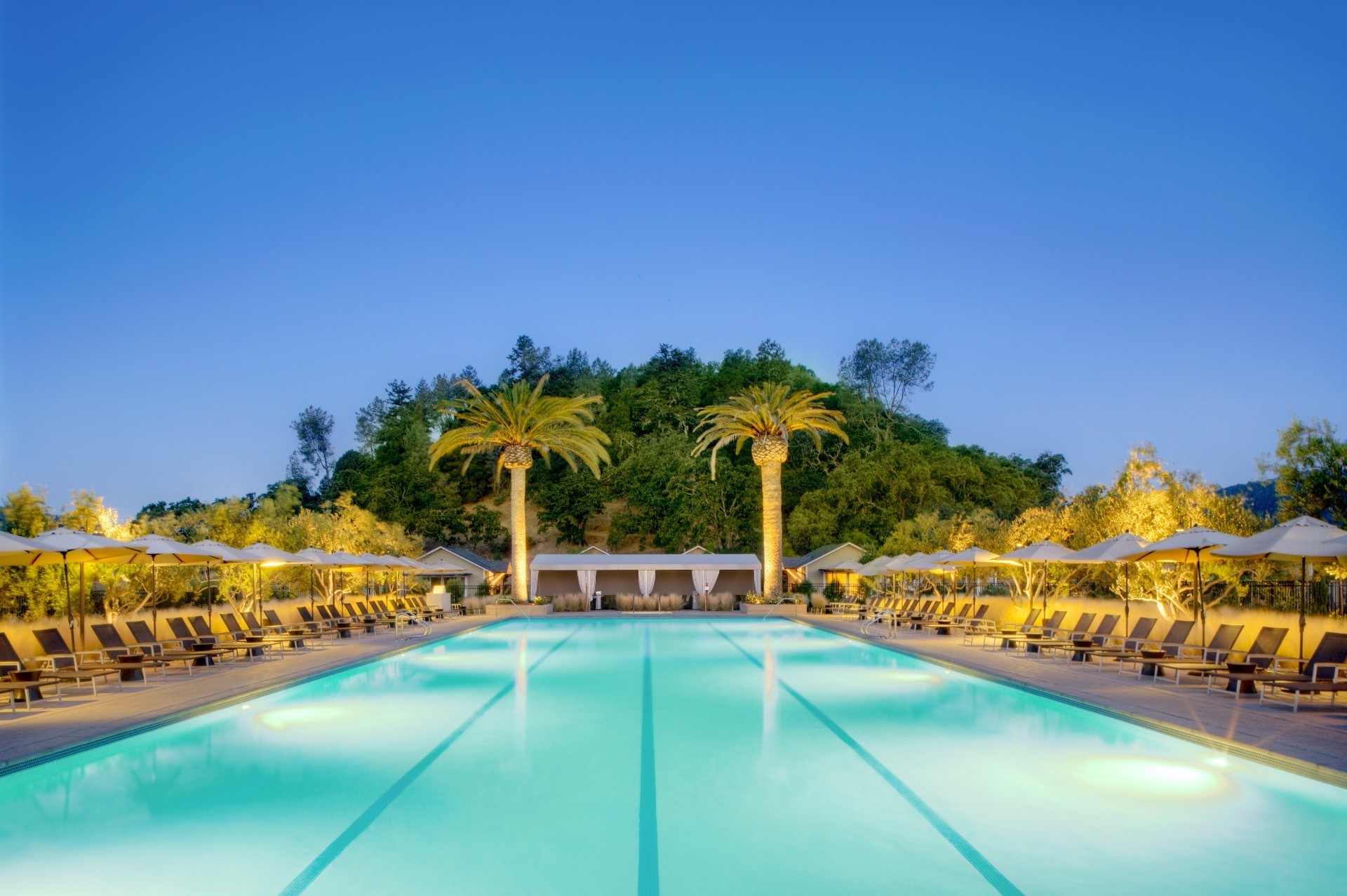 Wieczorny basen z leżakami w Turcji