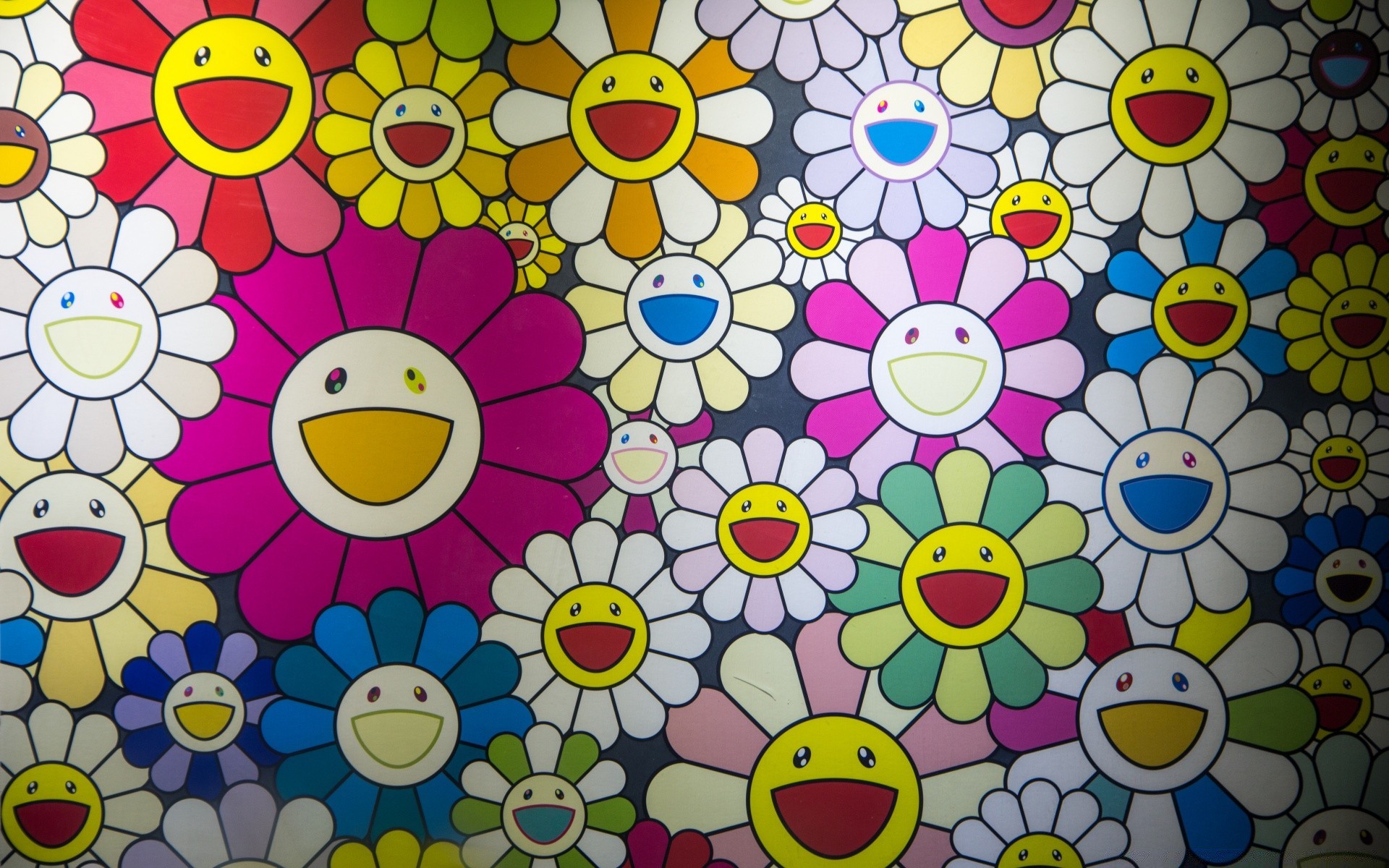Kwiaty na tle z uśmiechniętą buźką
