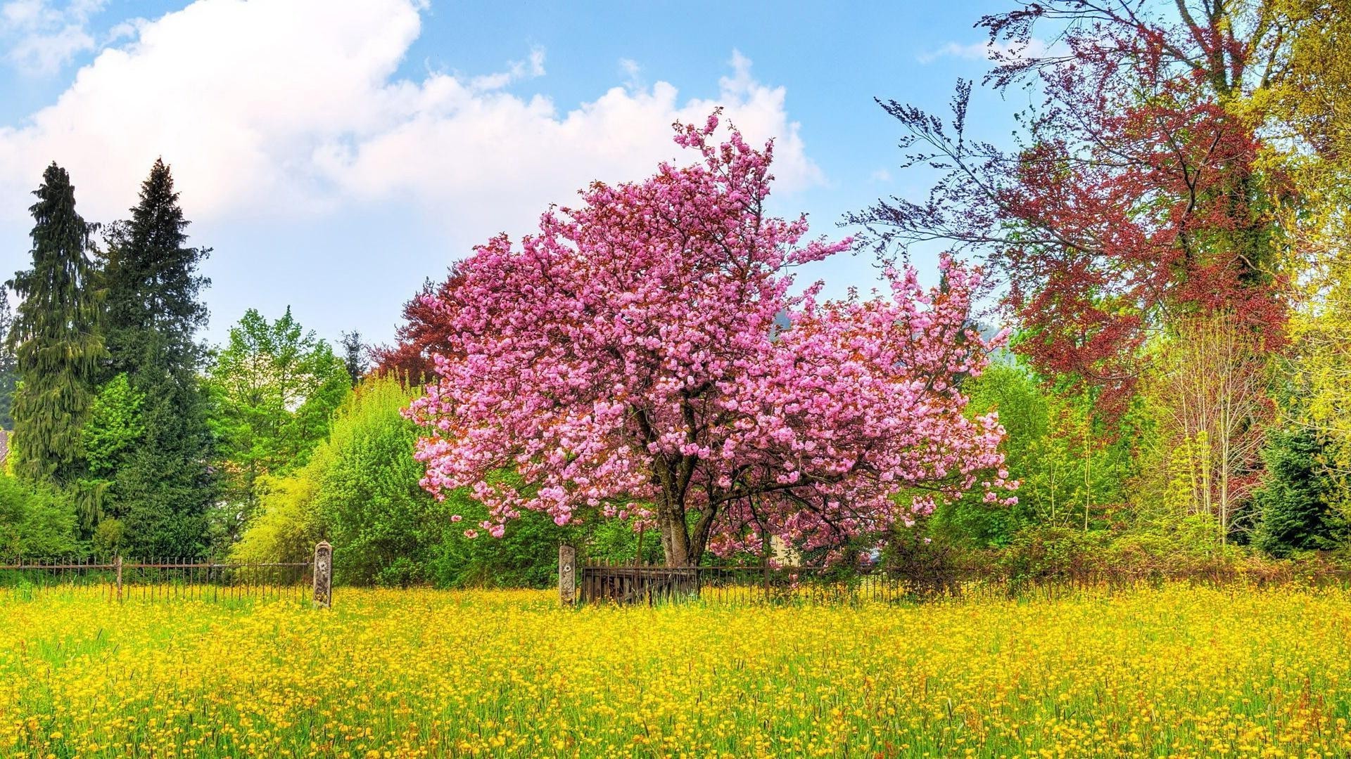 Drzewo Sakura w zielonym ogrodzie
