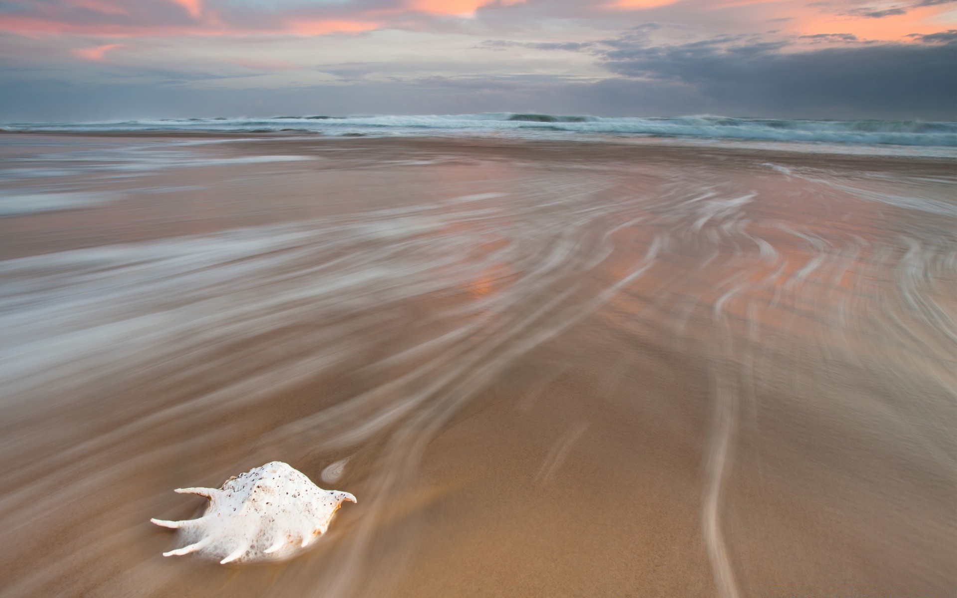 Wielka muszla na morskiej plaży, na piasku
