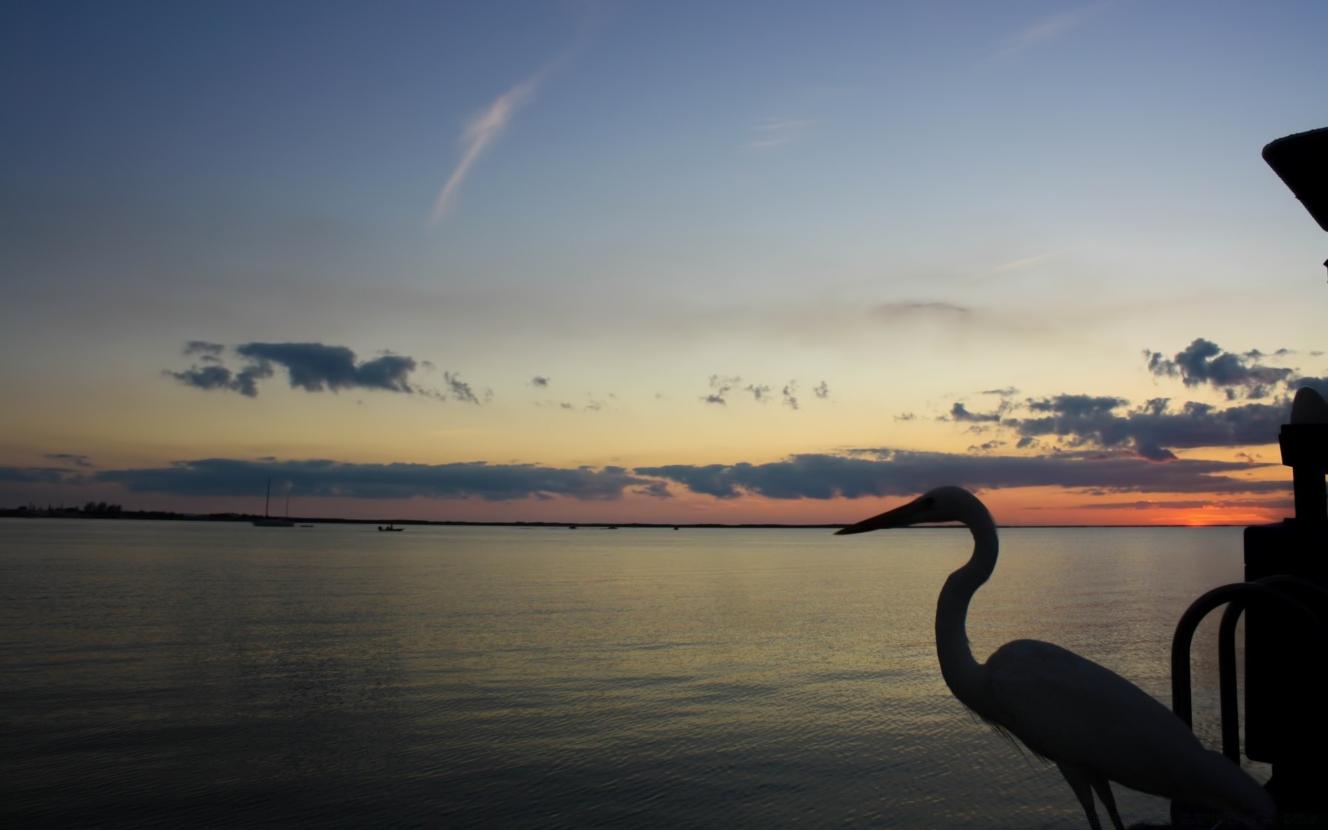 Czapla o zachodzie słońca przed powierzchnią wody