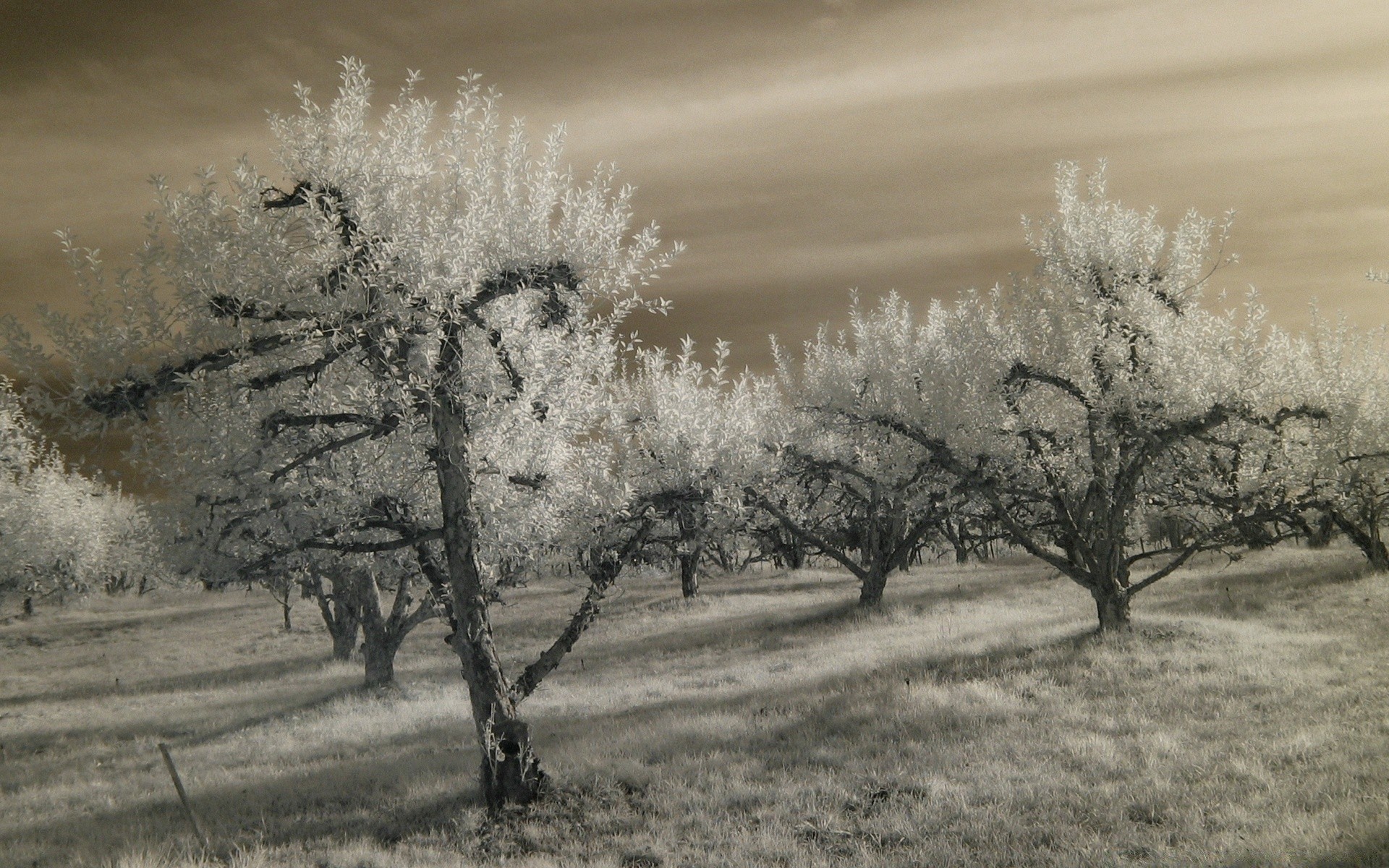 Czarno - białe zdjęcie krajobrazu zimą rzeki i wzgórz z wysokości