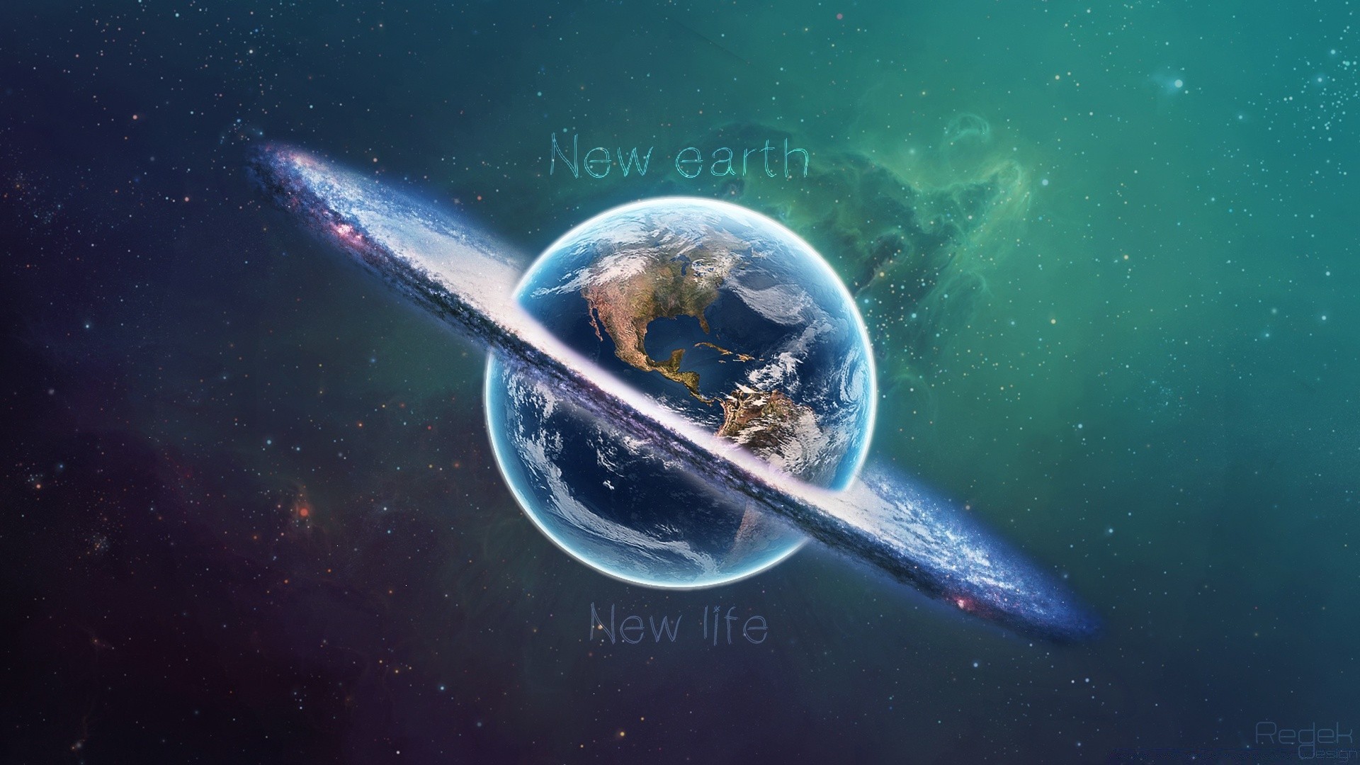 Kosmiczny widok Ziemi z pierścieniami jak Saturn
