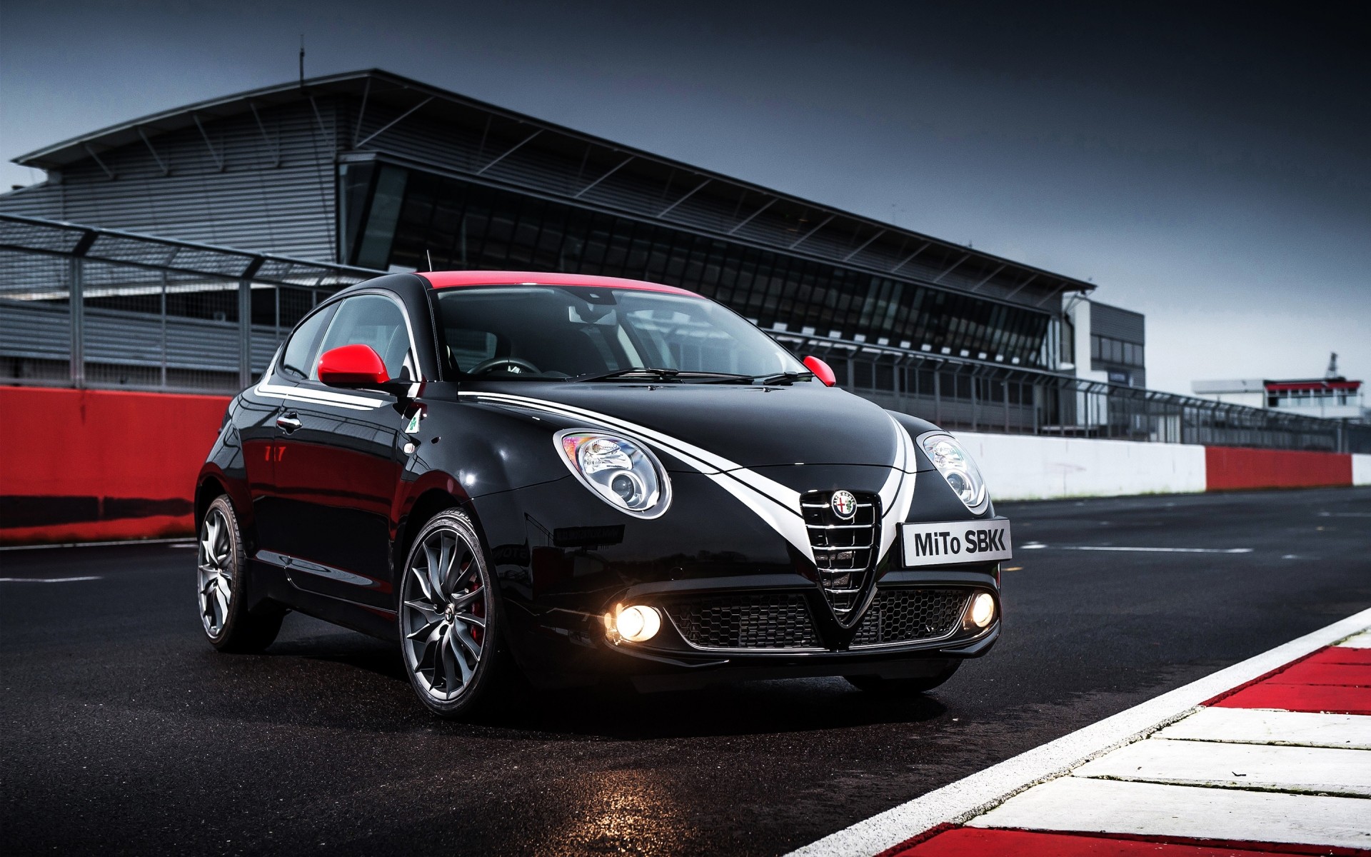 Pomarańczowy Mały Fiat w środku koła na tle zachmurzonego nieba