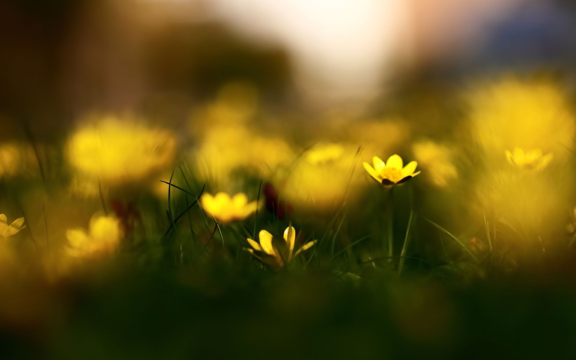 Pole z żółtymi kwiatami w blur