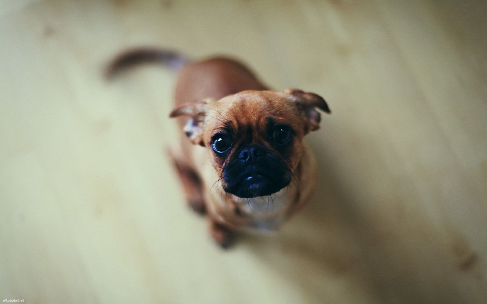 Słodki szczeniak patrzy w kamerę. Portret psa