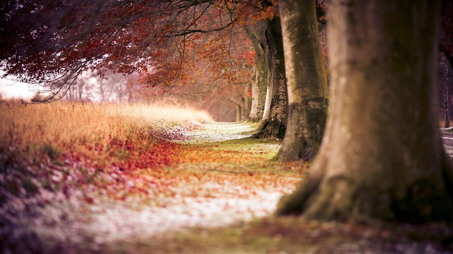 Jesienny krajobraz z uschniętym drzewem rozgałęzionym