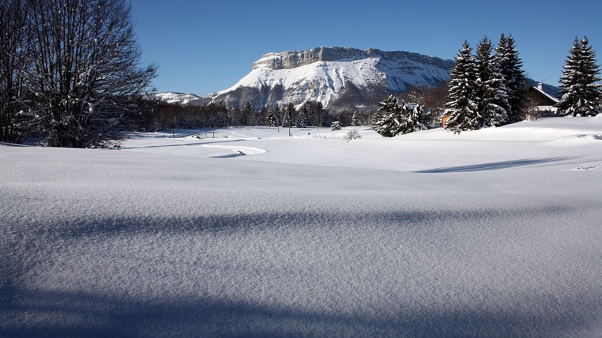 Powierzchnia jeziora na tle ośnieżonego lasu