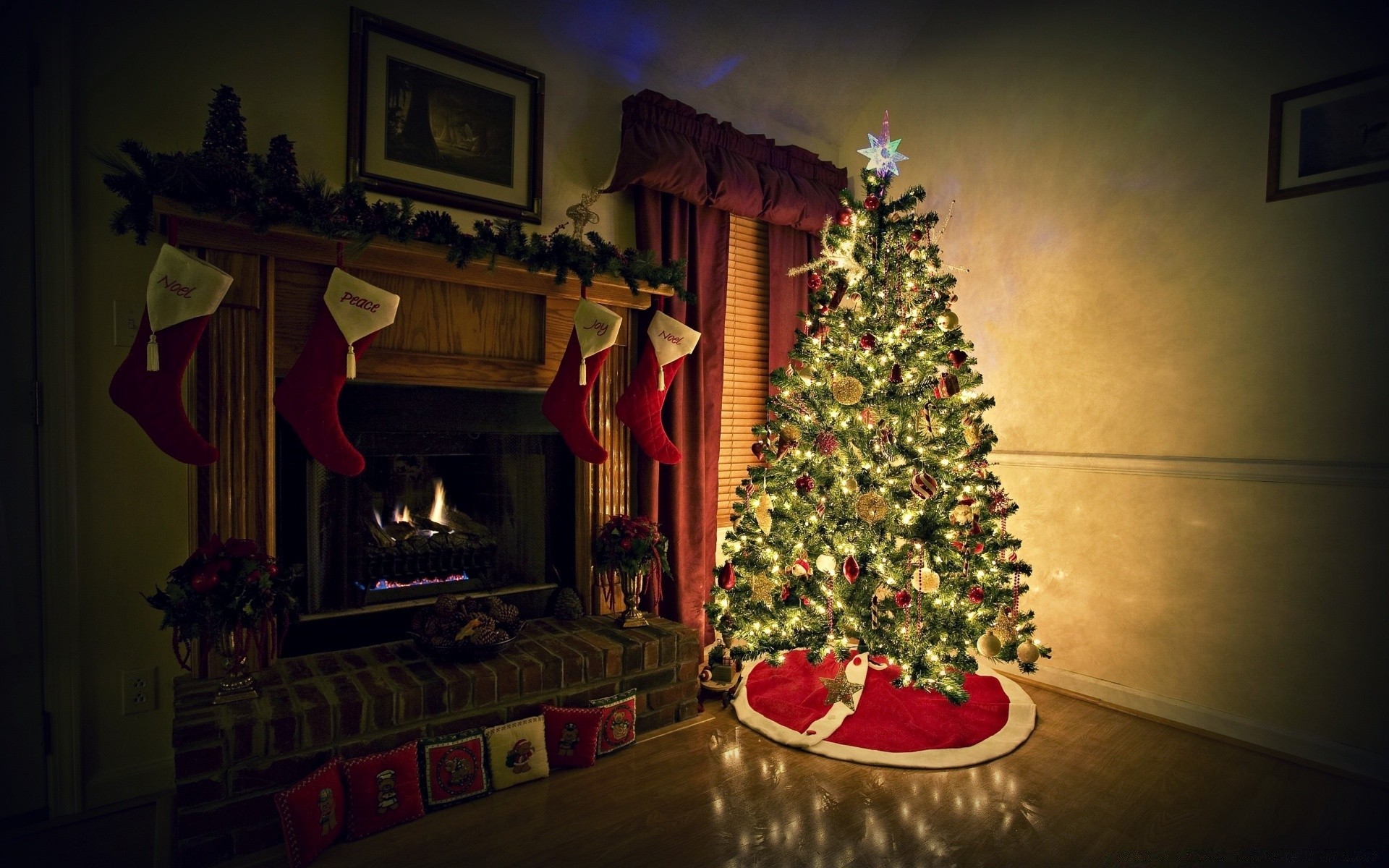 Choinka przy kominku