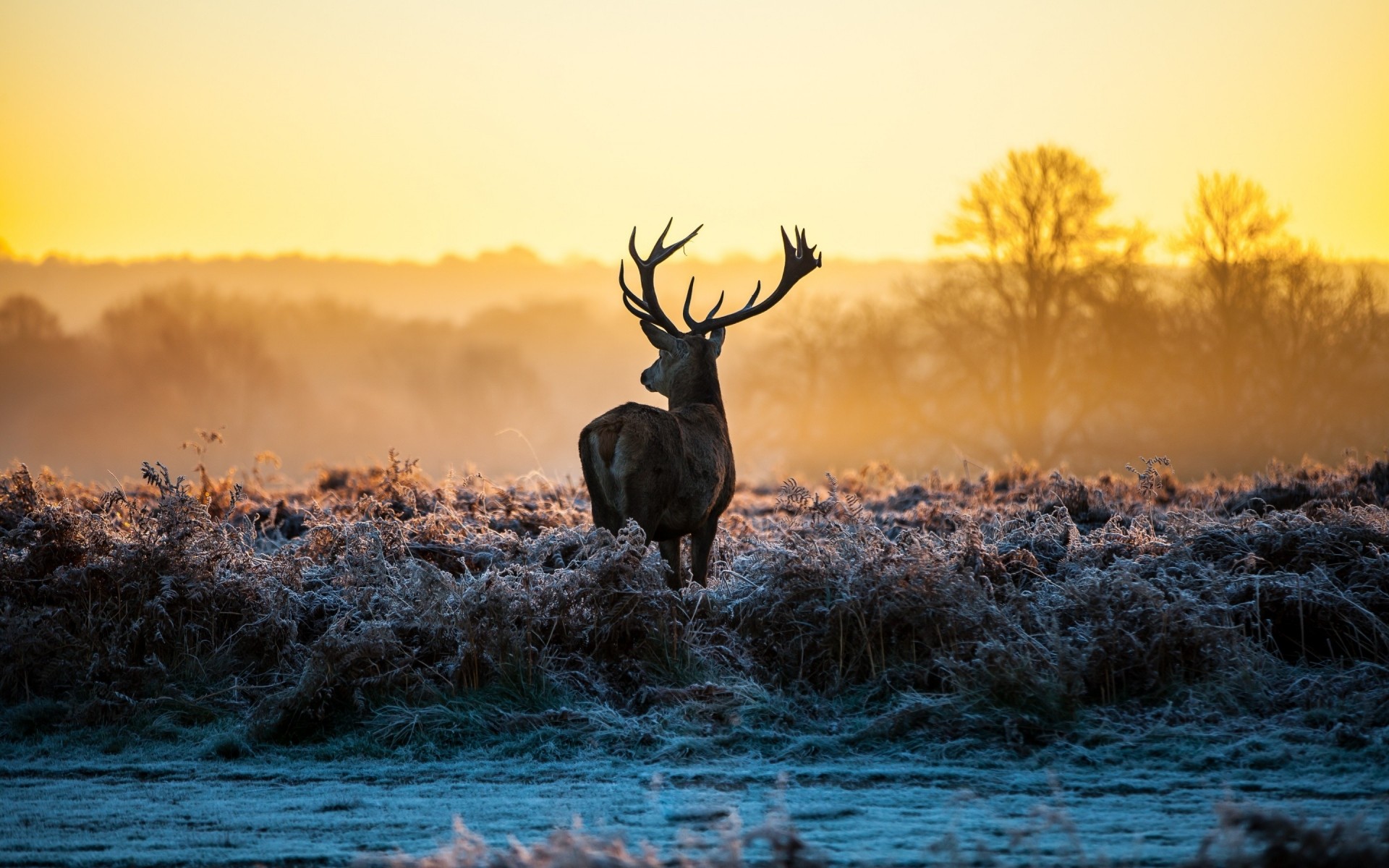 Jeleń o świcie, dzika przyroda