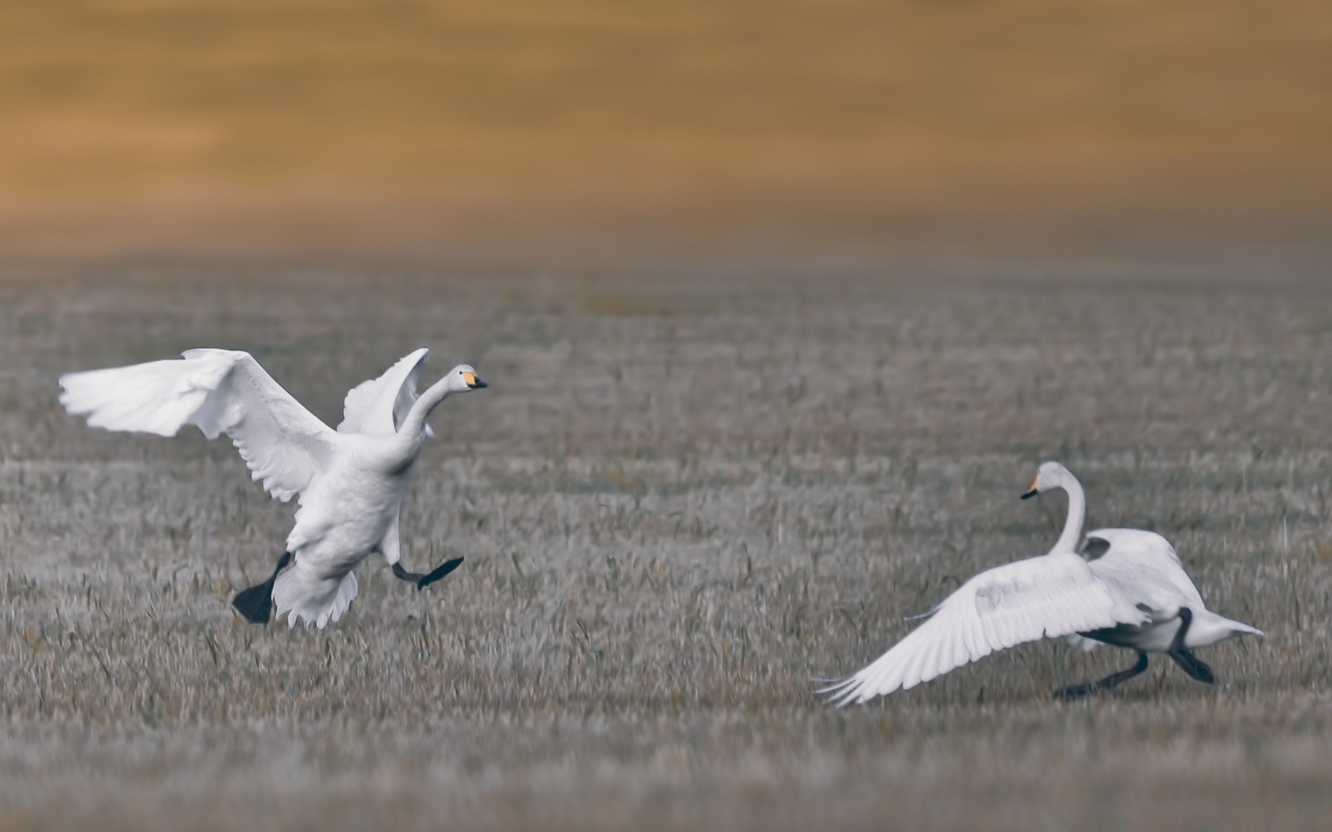 Dwa dzikie ptaki na zdjęciu zachodu Słońca