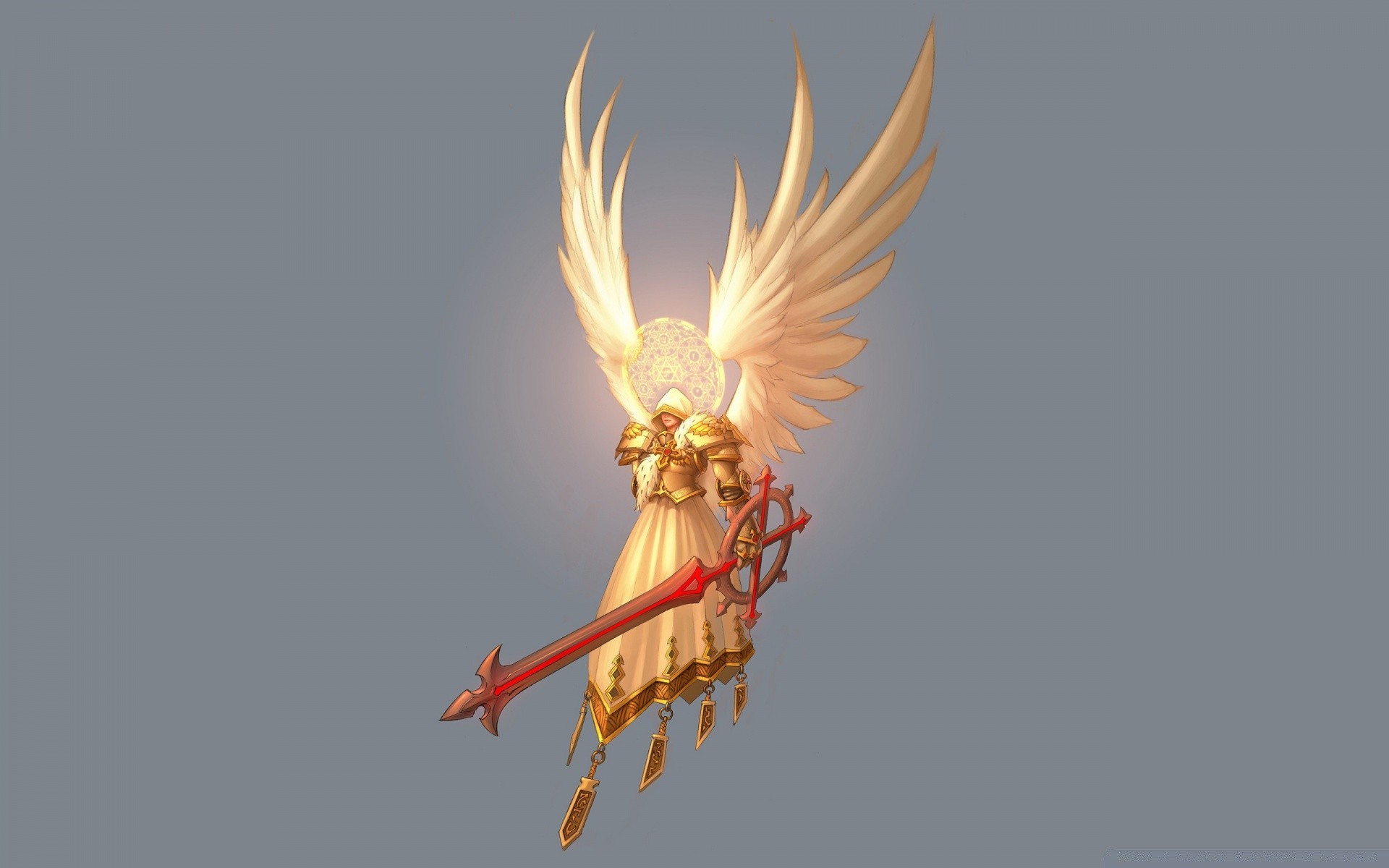 Szybujący bajkowy ptak z mieczem