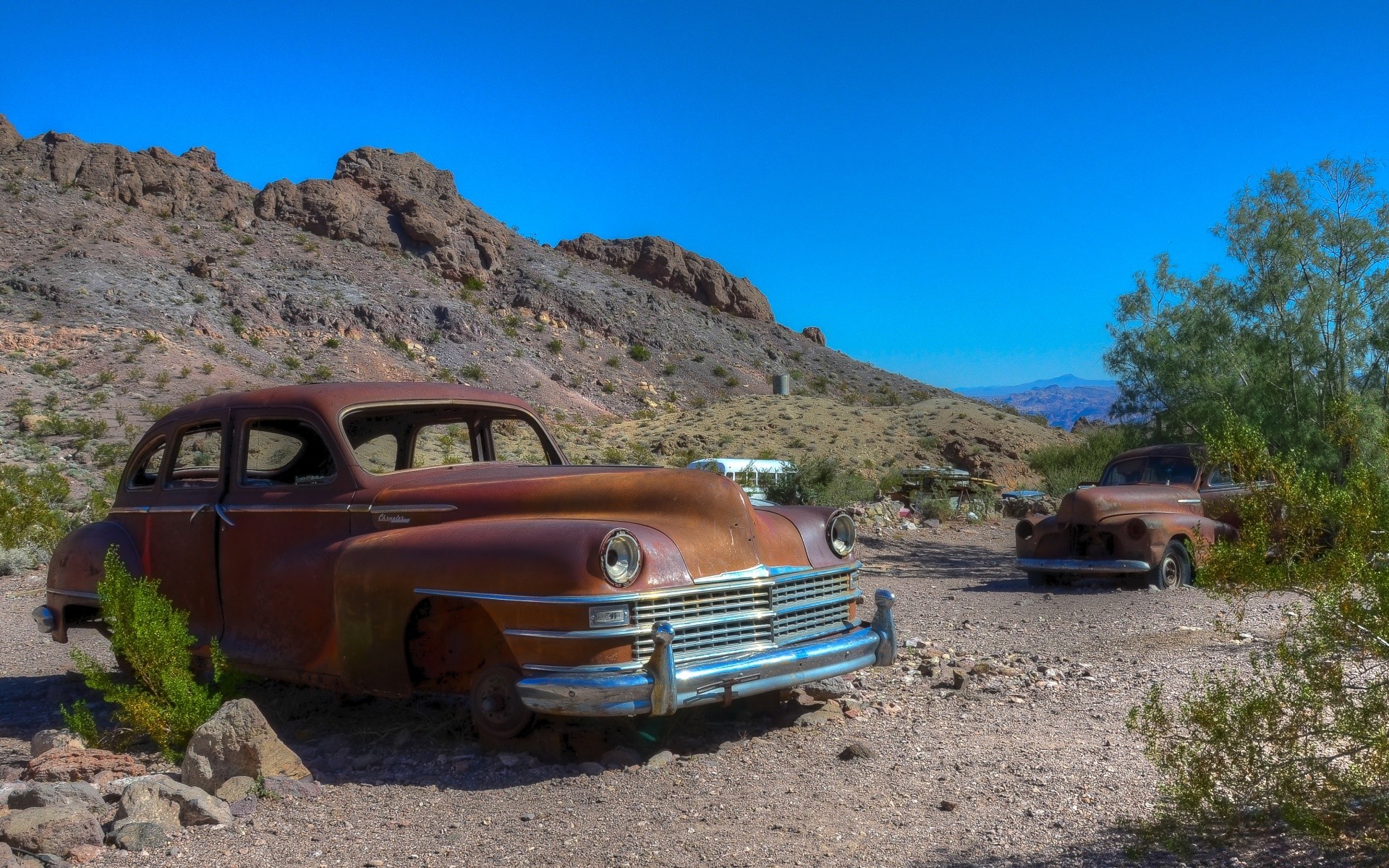 Opuszczone samochody retro na pustyni