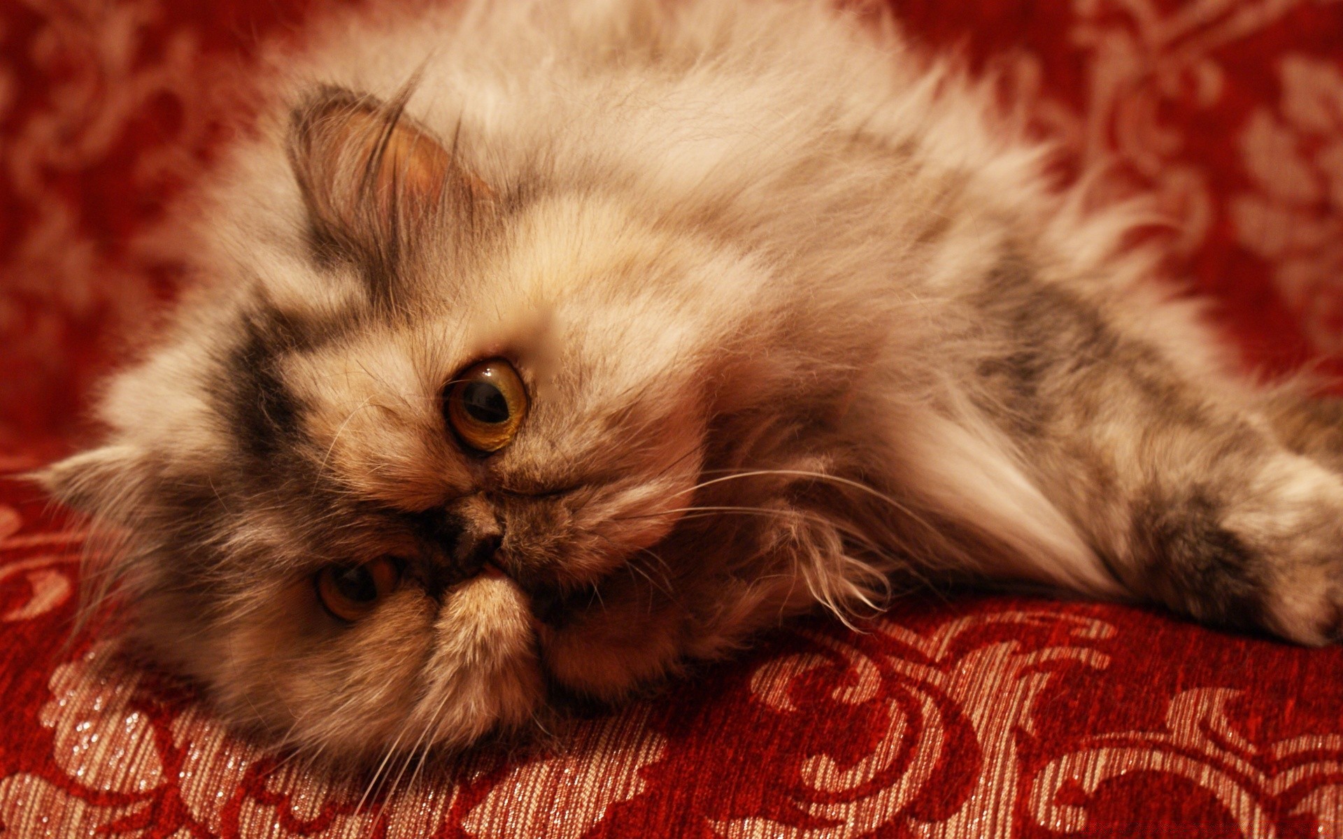 Biały kot na pomarańczowym tle