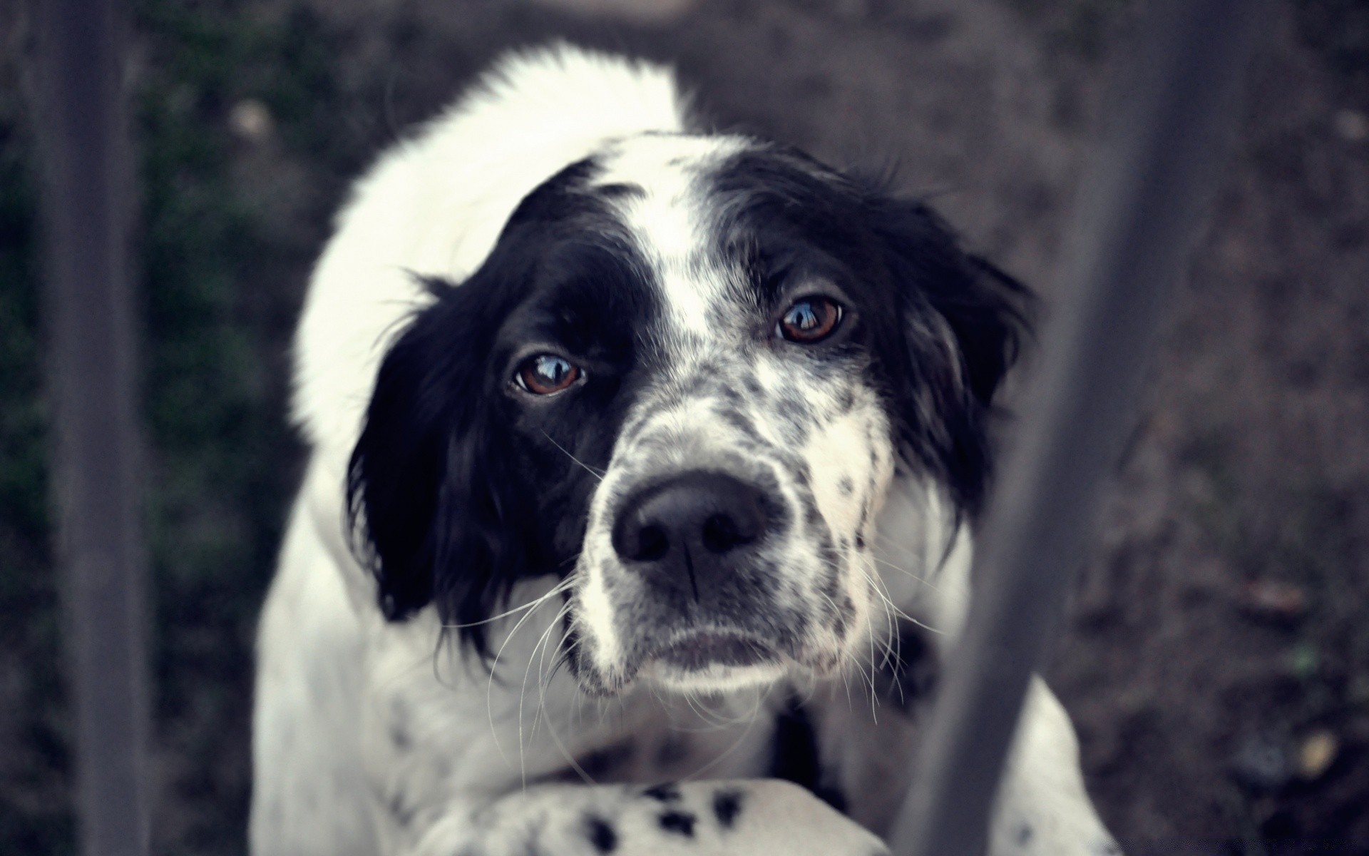 Śliczny mały biały szczeniak z czarnym oczkiem