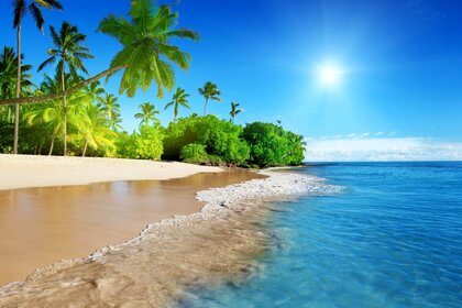 Letni krajobraz tropikalnej plaży na tle błękitnego nieba
