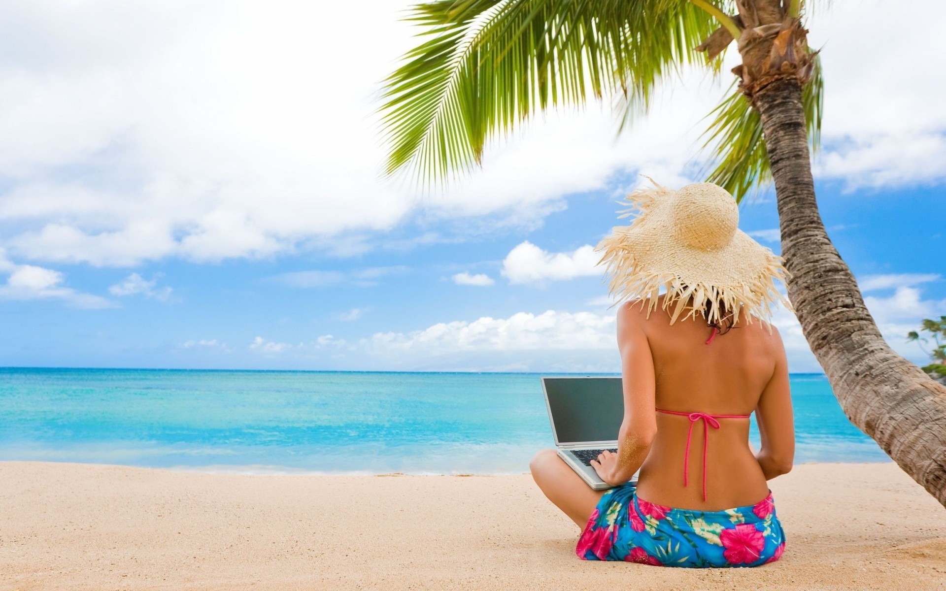 Łódź cumuje w pobliżu palm na tropikalnej wyspie