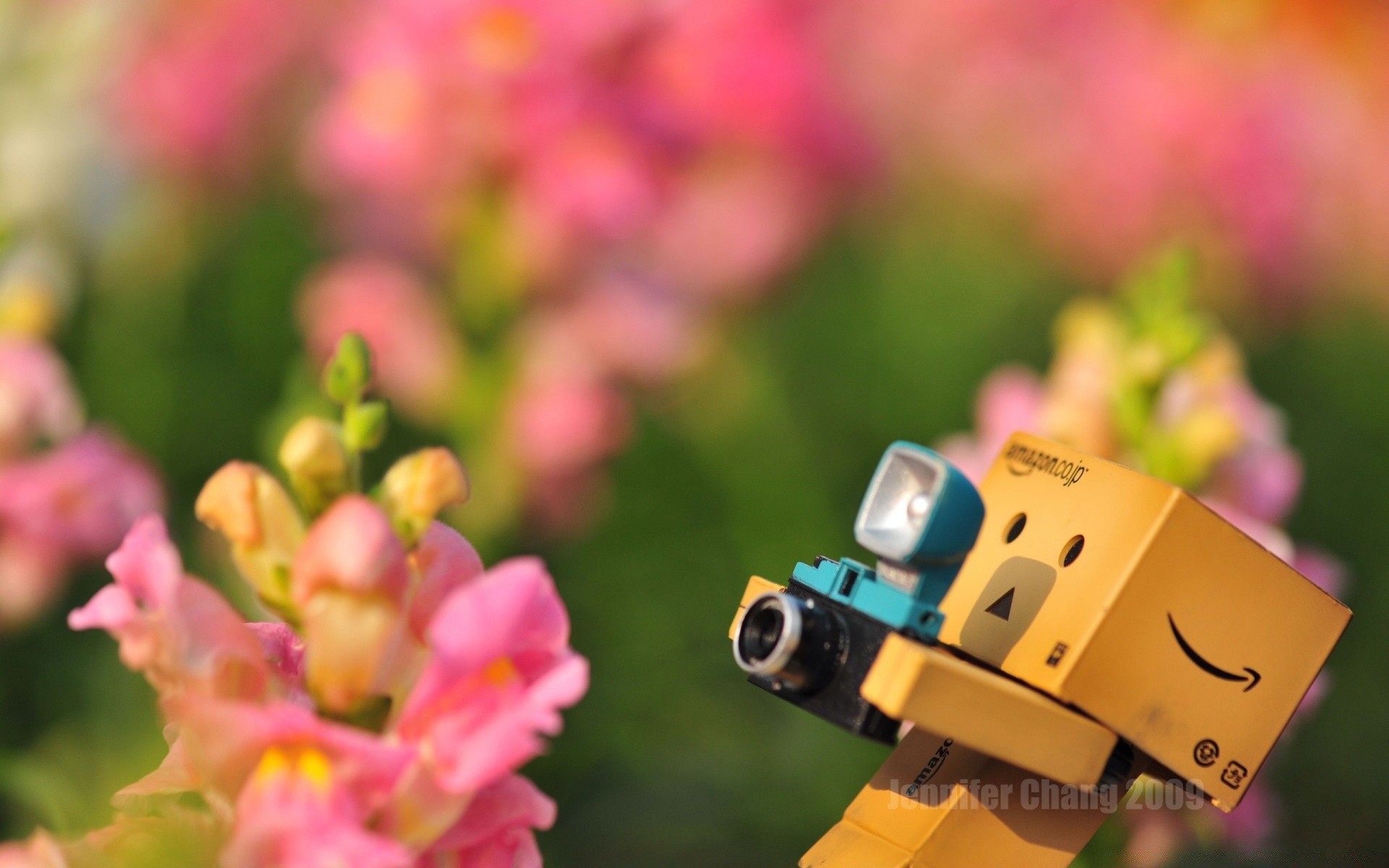 Ładny robot z kamerą na łonie natury