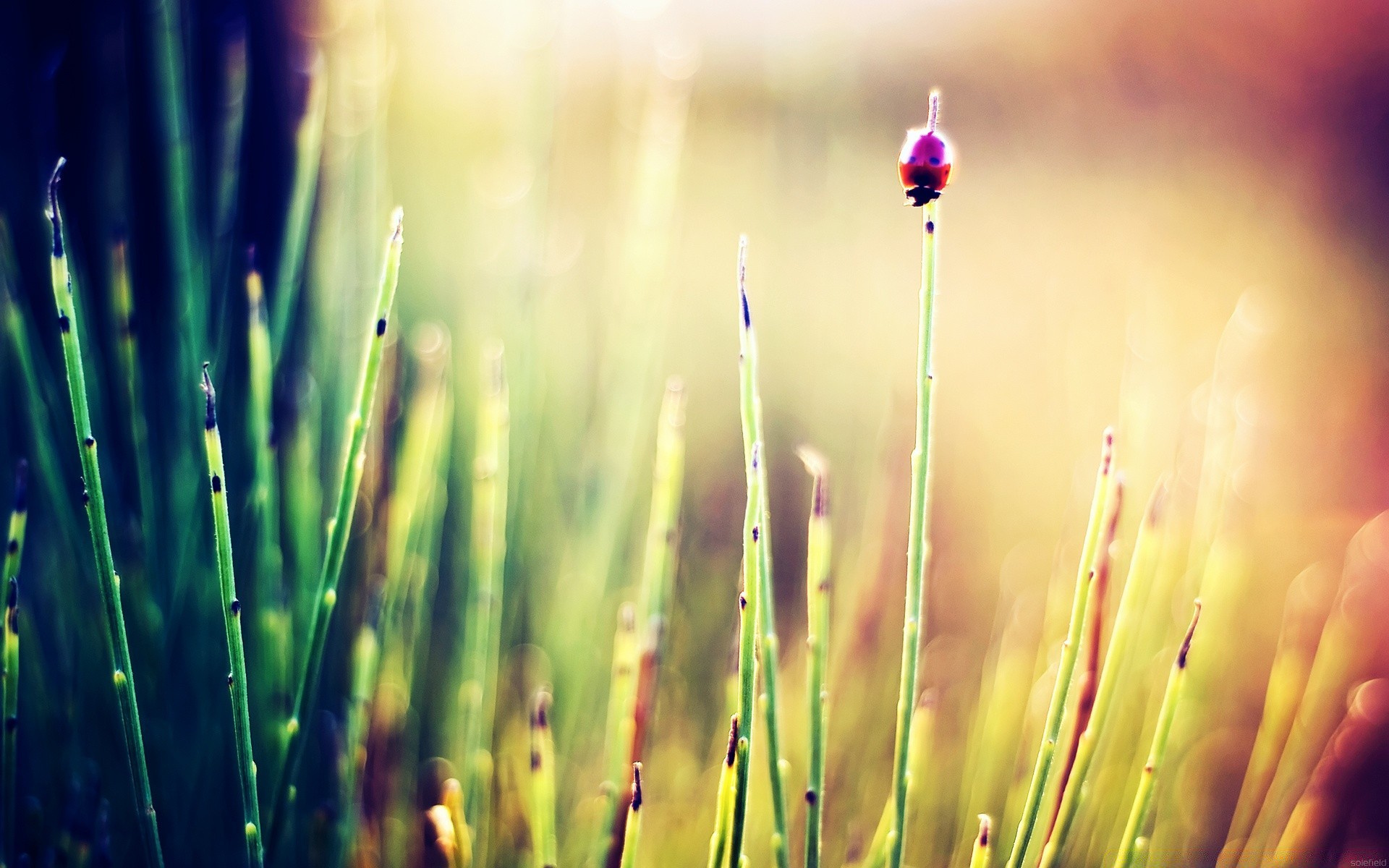 Promień światła w zielonej trawie
