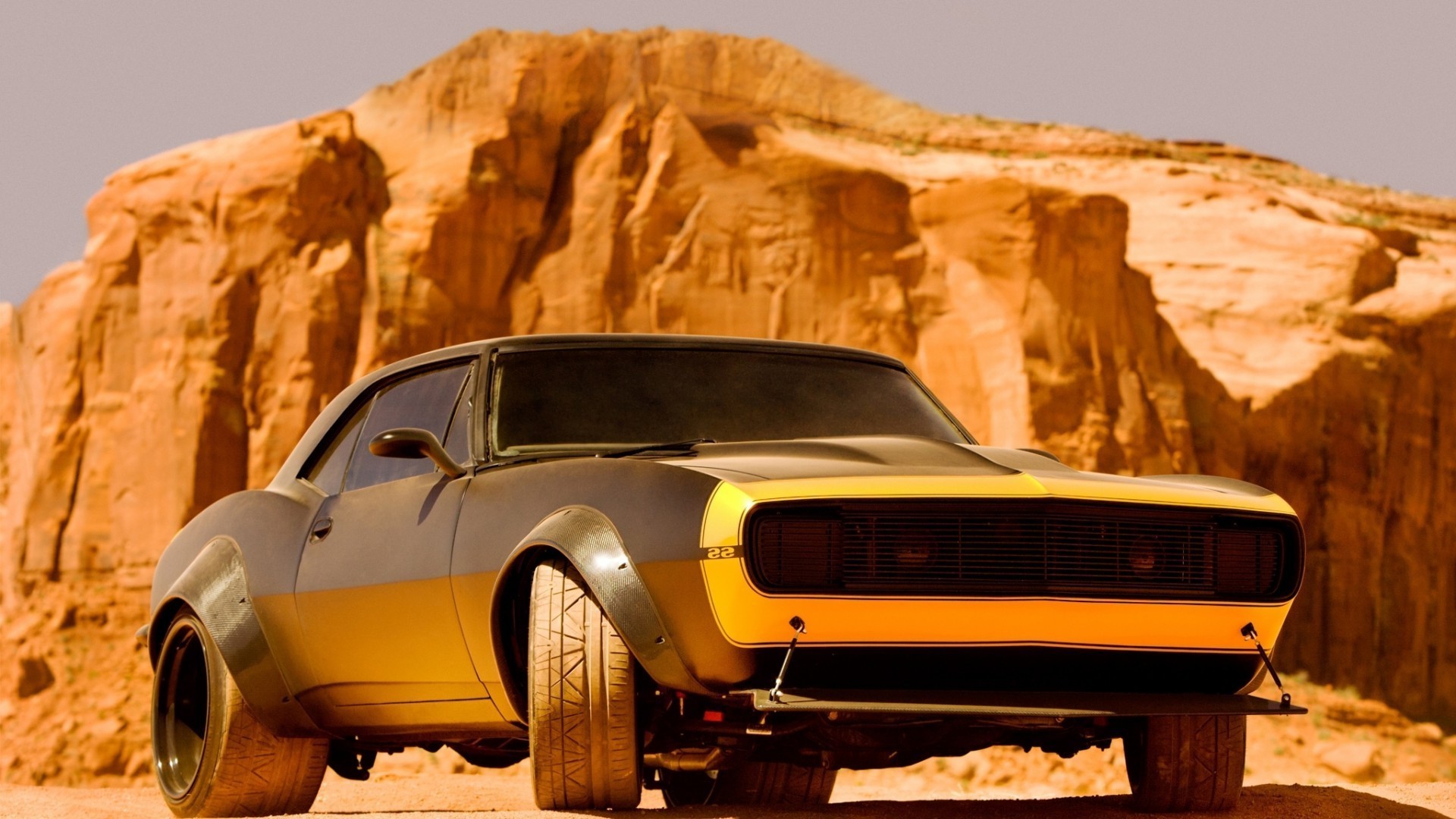 Żółty samochód sportowy z dużymi kołami Formuła 1