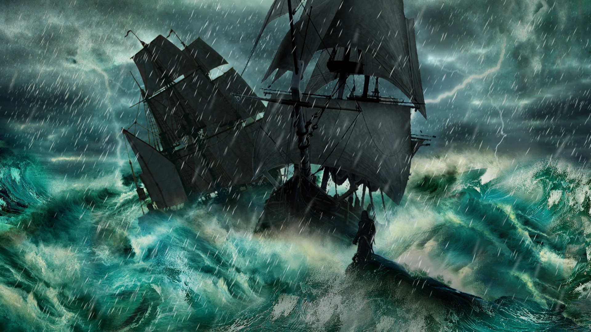 Statki złapane w gwałtowną burzę