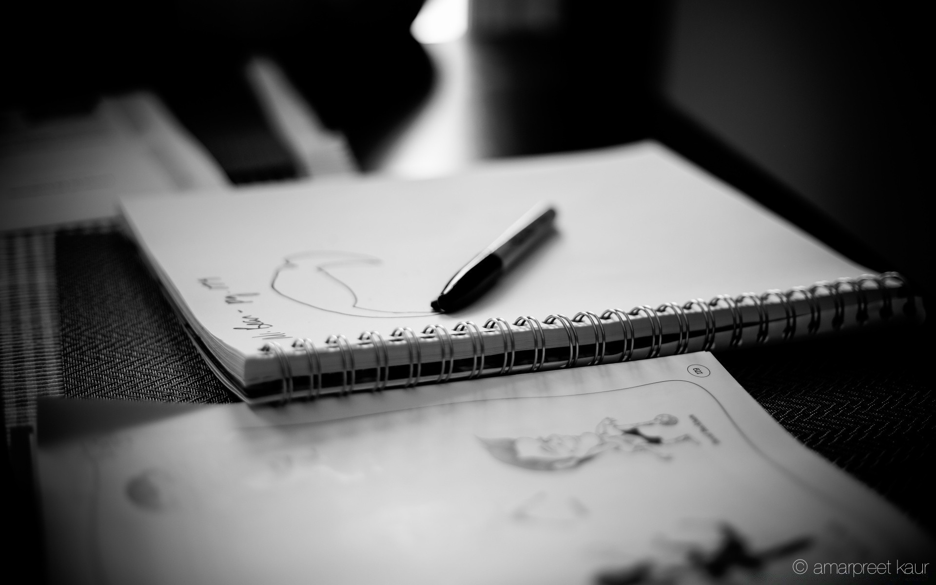 Niedokończony rysunek długopisem w notatniku